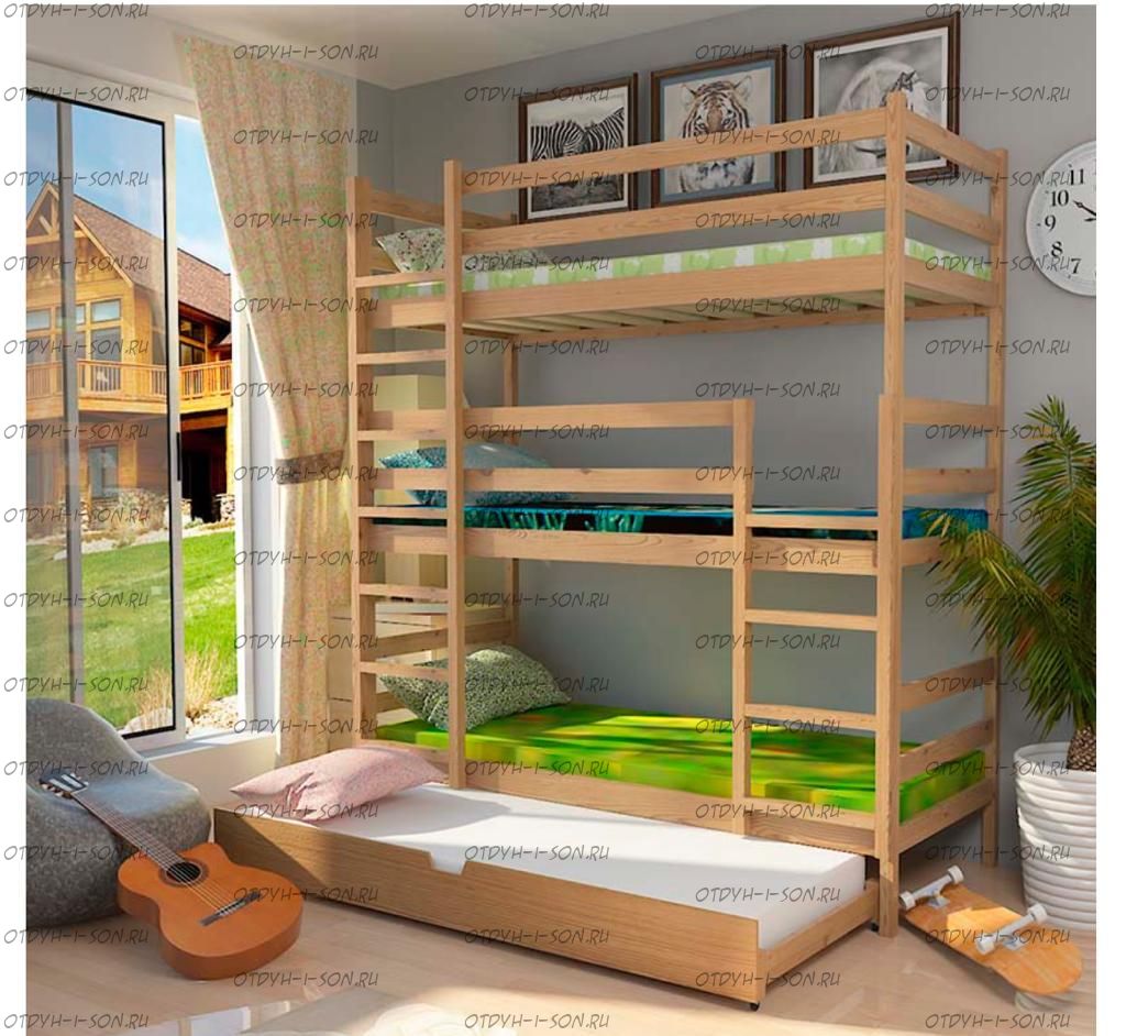 Кровать трехъярусная Trio массив. любые размеры