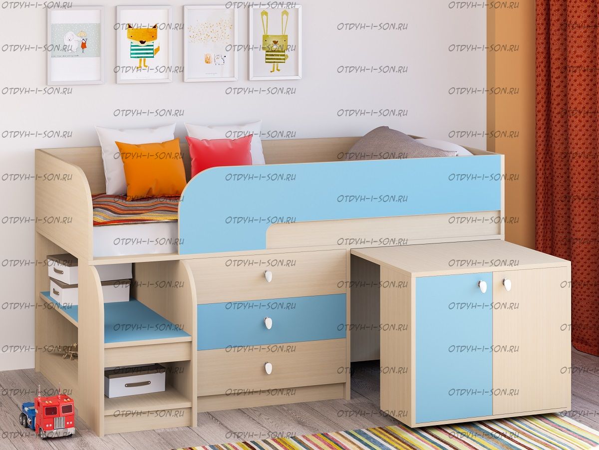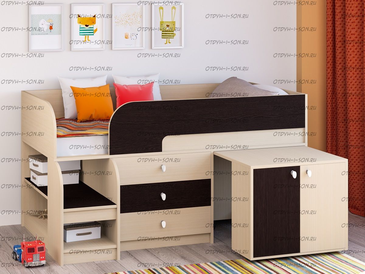 Кровать-чердак Астра 9.7 Характеристики: Спальное место кровати: 80х160 см. Внешние габариты: Высота бортиков:.... (макс. высота матраца 15 см). Матрас в стоимость не входит. Цвет корпуса: Дуб молочный, венге, орех, Дуб шамони Цвет фасада на выбор: Венге, Розовый, Дуб молочный, Орех, Фиолетовый, Дуб шамони, Голубой, Оранжевый, Салатовый, Дуб молочный