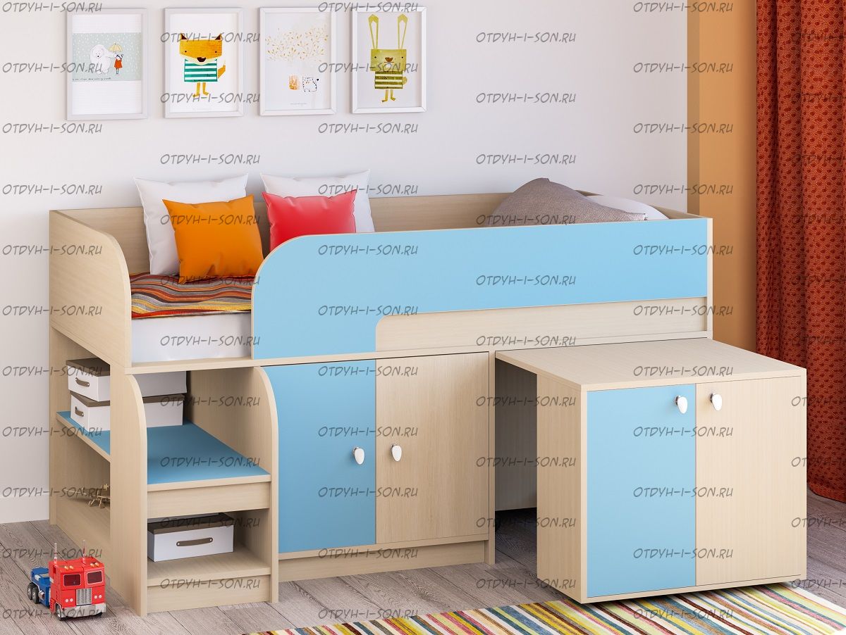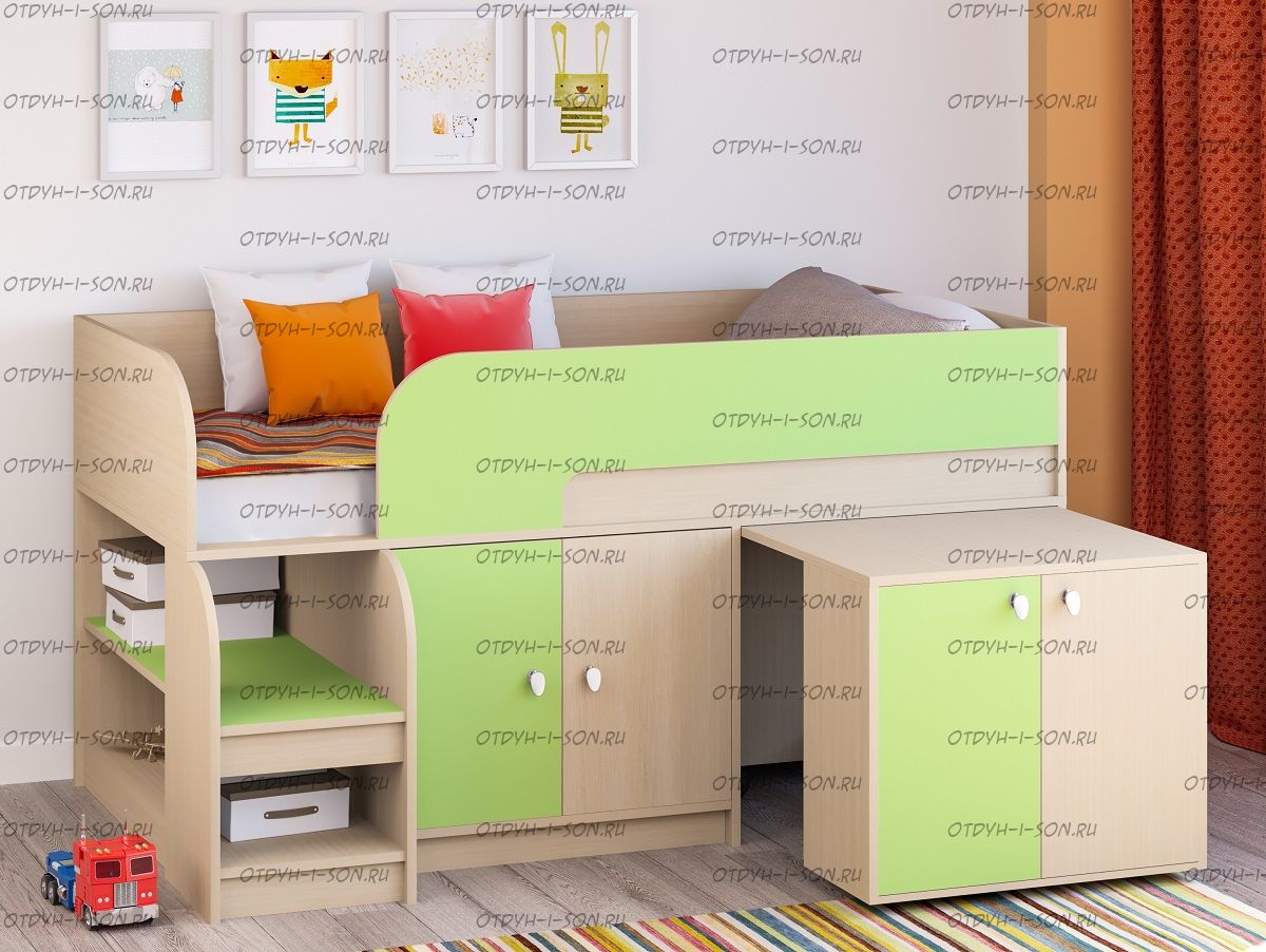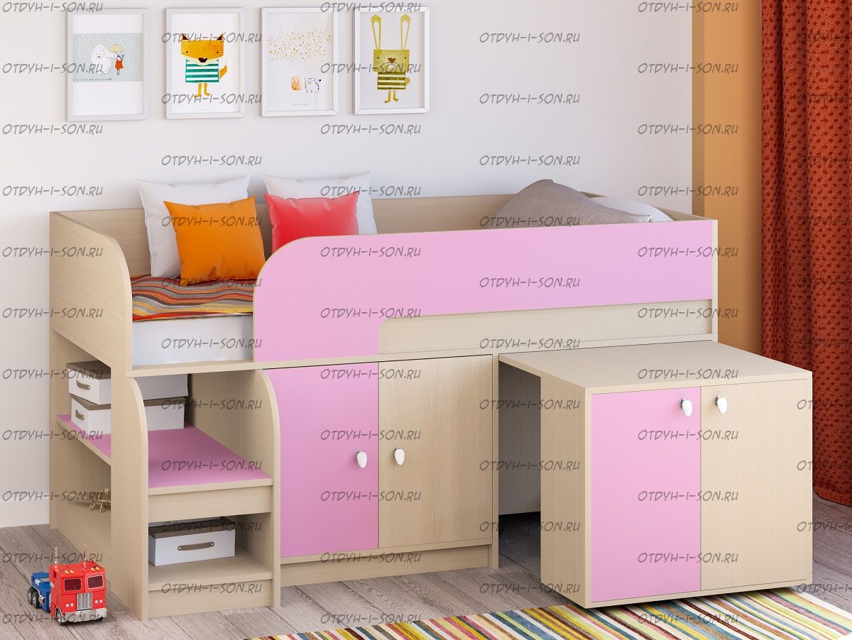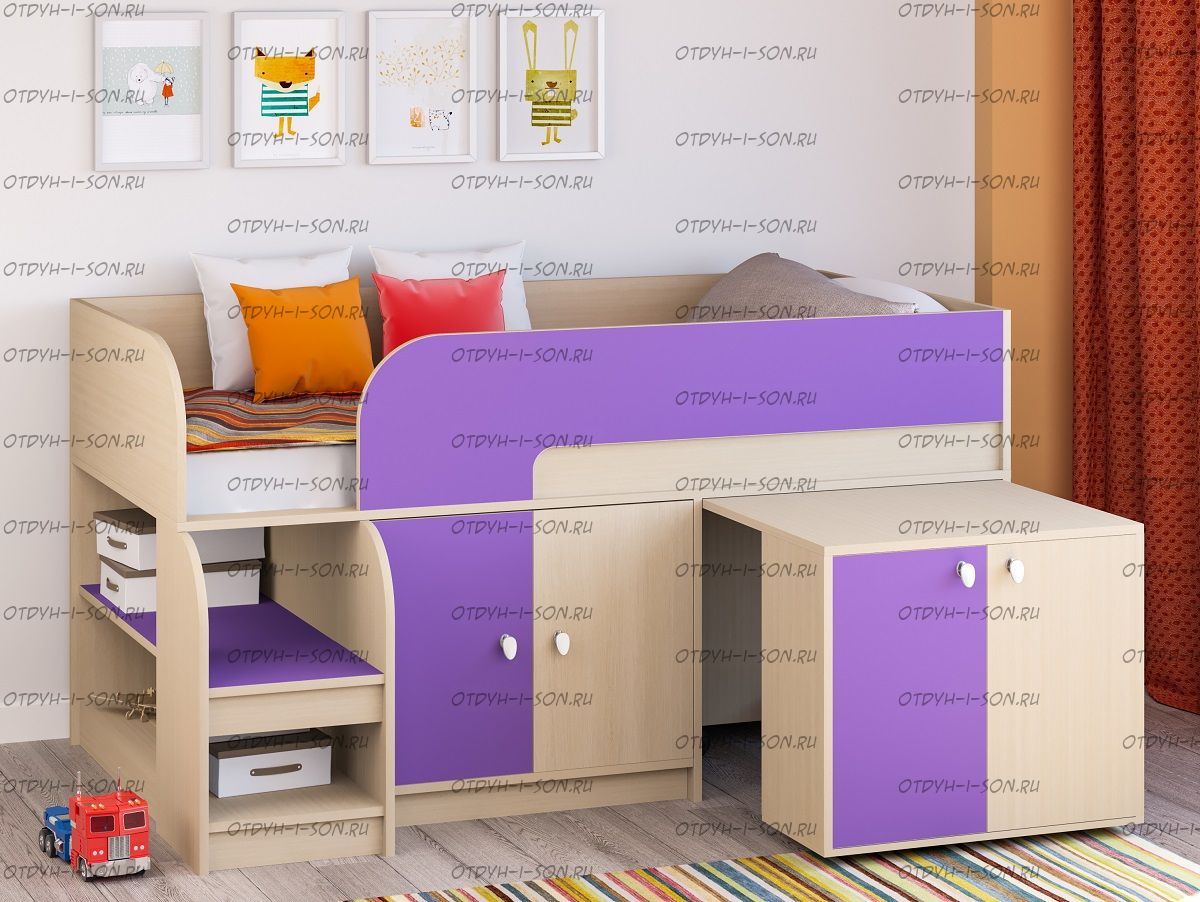 Кровать-чердак Астра 9.8 Характеристики: Спальное место кровати: 80х160 см. Внешние габариты: Высота бортиков:.... (макс. высота матраца 15 см). Матрас в стоимость не входит. Цвет корпуса: Дуб молочный, венге, орех, Дуб шамони Цвет фасада на выбор: Венге, Розовый, Дуб молочный, Орех, Фиолетовый, Дуб шамони, Голубой, Оранжевый, Салатовый, Дуб молочный