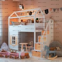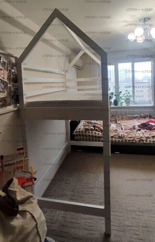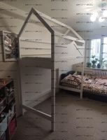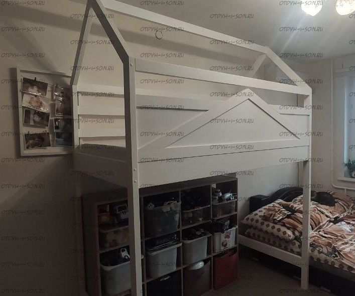 Кровать-чердак Домик Standard №29. На первой фотографии кровать с высотой от пола до начала боковины кровати 105 см. Но высоту изделия можно сделать почти любую по Вашему запросу.