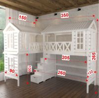 Кровать-чердак Домик угловой Felicia №8 может быть изготовлена как трехъярусная кровать. Характеристики: Размер каждого спального места верхнего яруса: 70х180, 80х180 см, 80х190 см, 90х190 см., 90х200 см. (и любые другие на Ваш вкус) Внешние размеры: Материал: сосна Возможны любые нестандартные размеры Вес кровати: Объем кровати: Цвет: Возможность трансформации в отдельно стоящие кровать чердак и двуспальную кровать; - без матрасов; опорный брус спинок(ножки) - 40х80мм. Внимание: для любой модели кровати возможно увеличение высоты бортиков кровати! Возможно изготовление кровати нестандартных размеров по вашим замерам, доплата за нестандартный размер: - за кровать + 10% от стоимости изделия; Производство Владимирской мебельной фабрики, кровать доставляется напрямую от производителя, самовывоз ограничен.