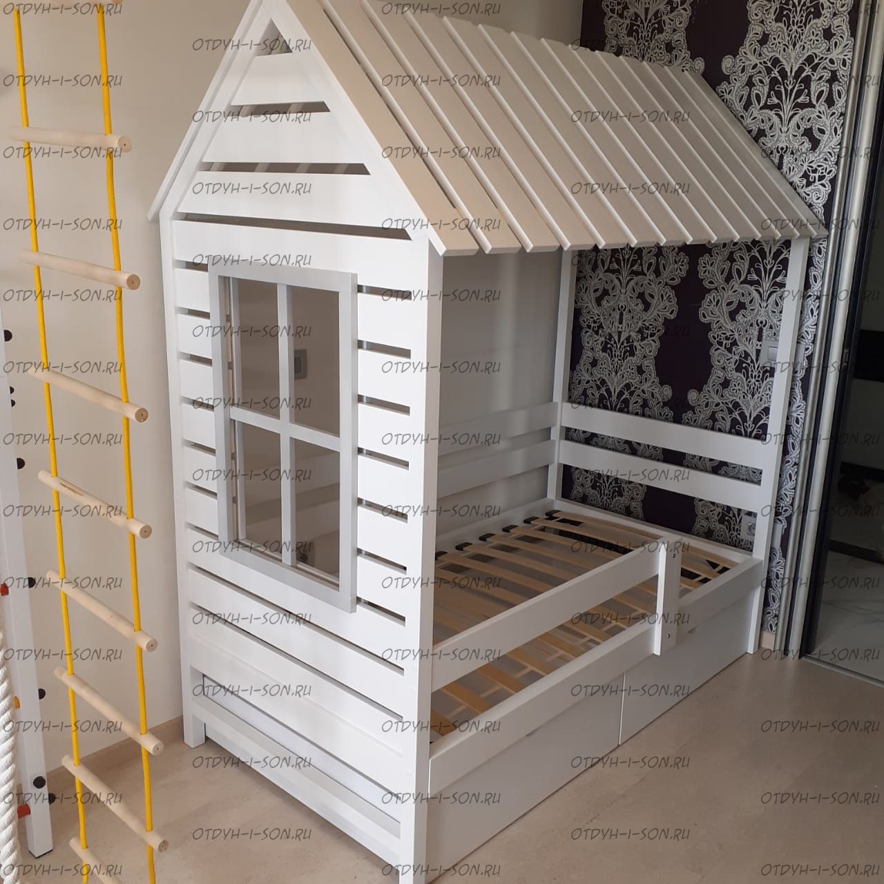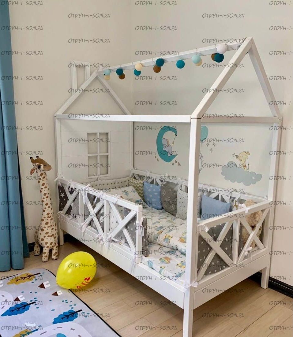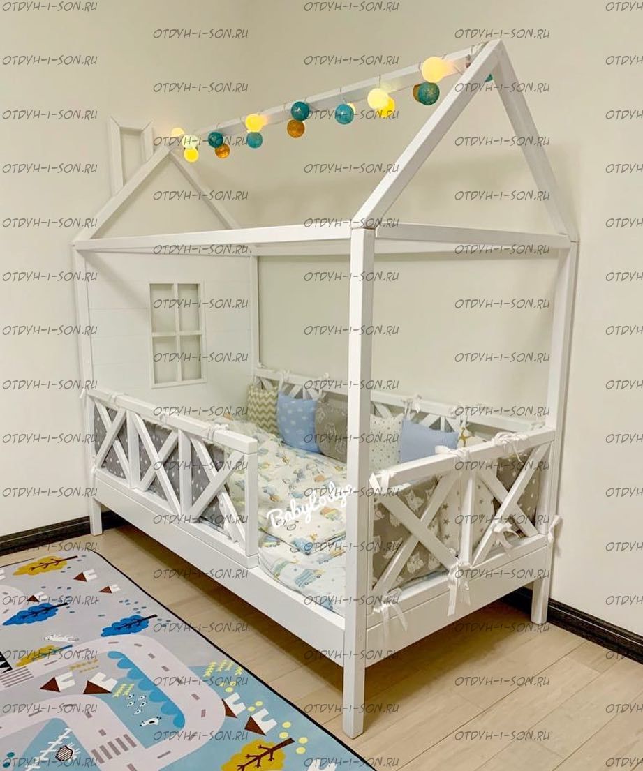 Кровать-Домик Simple Прованс №34 Характеристики: Размер спального места: 80Х160, 80Х170, 80Х180, 80Х190, 90Х170, 90Х180, 90Х190 см. Габаритные размеры: Материалы: массив бука или массив сосны Основание: фанерные ламели