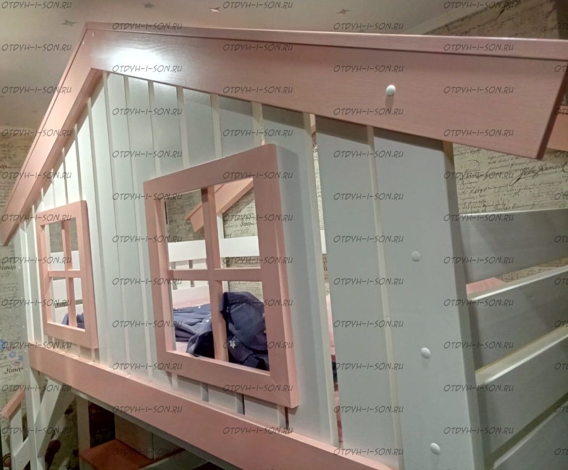 Кровать-чердак Домик Calipso №9 Характеристики: Размер спального места верхнего яруса: 60х140, 70х180, 80х160, 80х180 см, 80х190 см, 90х190 см., 90х200 см. (и любые другие на Ваш вкус) Внешние размеры: Высота кровати Домика со спинками: Расстояние от ламелей, на которые кладется матрас до края верхней царги : Материал: сосна Возможны любые нестандартные размеры Верхний ярус выдерживает нагрузку до 120 кг. Вес кровати: Объем кровати: Опорный брус спинок(ножки) - 40х80мм. Цвет: любые Внимание: для любой модели кровати возможно увеличение высоты бортиков кровати! Возможно изготовление кровати нестандартных размеров по вашим замерам.