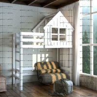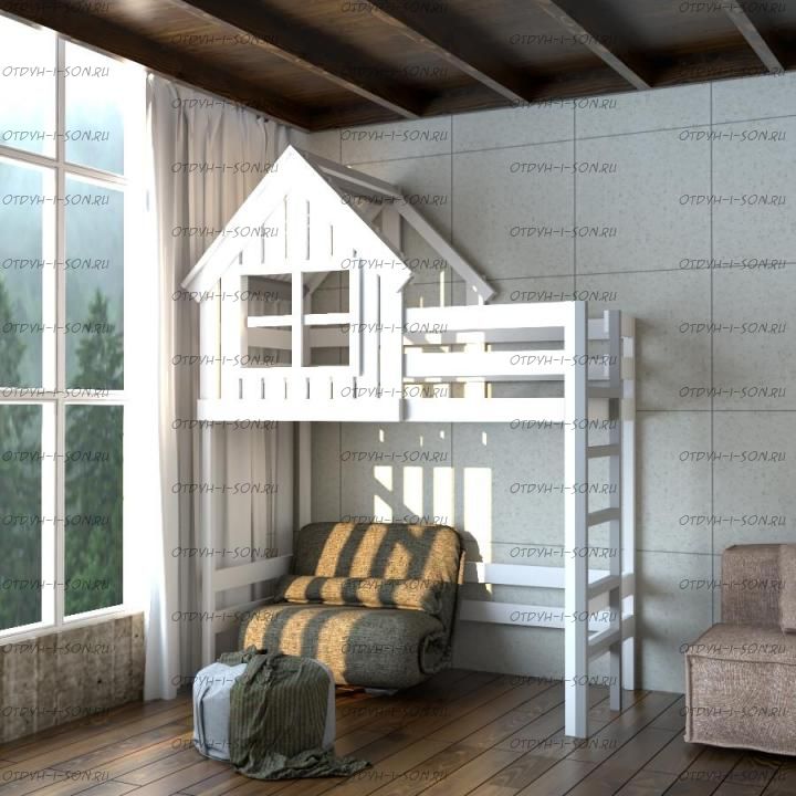 Кровать-чердак Домик Factory №11. Кровать Домик для детей и подростков изготовлены из массива сосны.