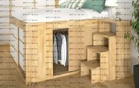 Кровать чердак Фокси №26 Характеристики: •Размеры спального места: 80х160 см.,90х180 см.,90х200 см.и любые другие •Внешние размеры кровати при размере спального места 90х200 (ШхГхВ): •Внешние размеры кровати с лестницей-комодом сп.место 90х200 (ШхГхВ): •Габаритные размеры: любые •Материалы: массив сосны •Цвет покрытия: любая цветовая гамма (таблица палитры Ral);