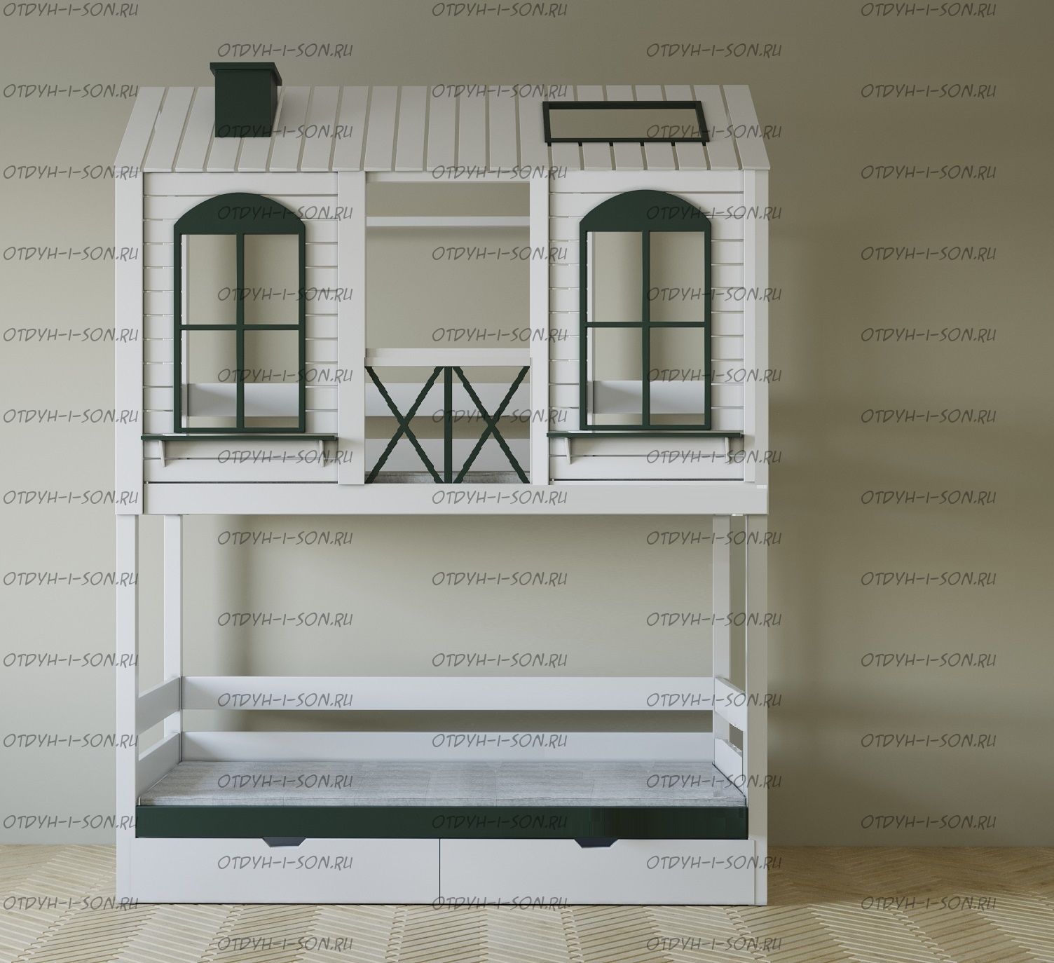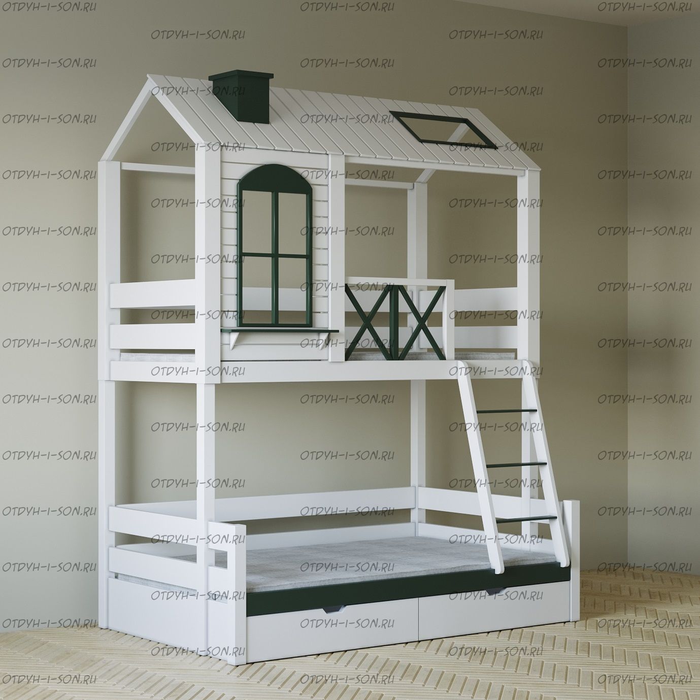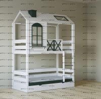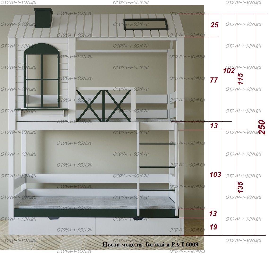 Кровать-чердак Домик Прованс Felicia №3А Комплектация: Кровать двухъярусная Домик Ящики подкроватные Лестница-тумба Характеристики: •Размеры верхнего спального места: 80х160 см.,90х180 см.,90х200 см.и любые другие •Размеры нижнего спального места: 80х160 см.,90х180 см.,90х200 см.и любые другие •Внешние размеры кровати при размере спального места 90х200 (ШхГхВ): •Внешние размеры кровати с лестницей-комодом сп.место 90х200 (ШхГхВ): •Габаритные размеры: любые •Материалы: массив сосны •Цвет покрытия: любая цветовая гамма (таблица палитры Ral);