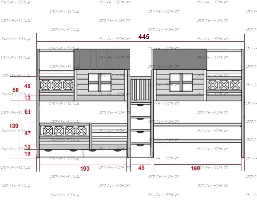 Кровать-чердак Домик Standard №34А может быть изготовлена как двухъярусная кровать.