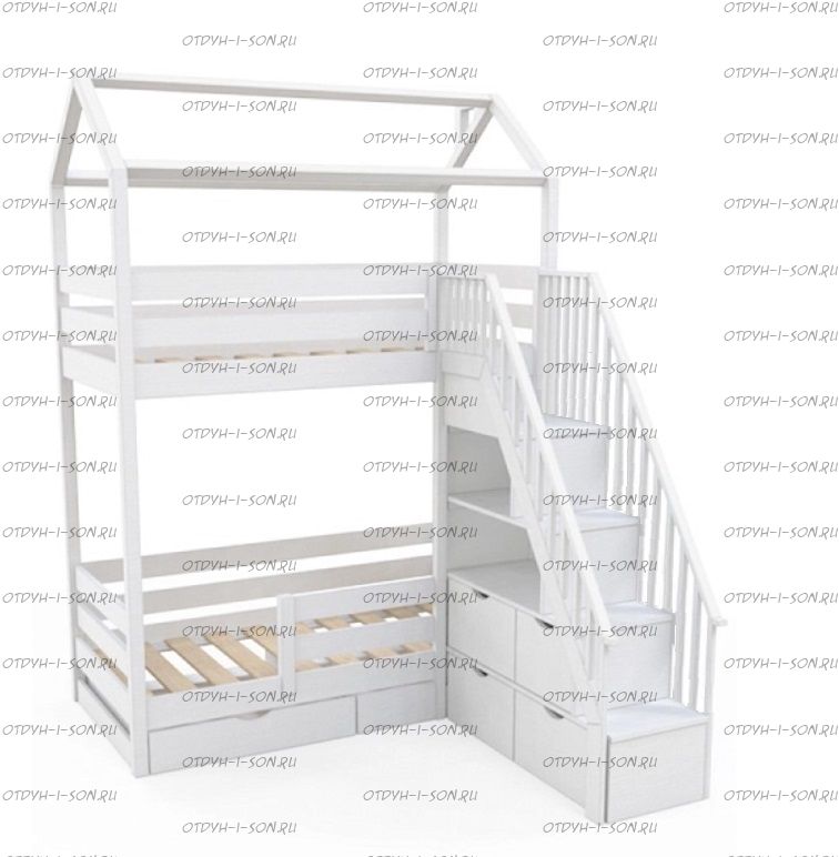 Кровать двухъярусная Домик Standard может быть изготовлена как двухъярусная кровать.