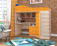 Детский подростковый комплекс «Кадет» скроватью. Кровать выполнена из материала ЛДСП 22мм. Кромка ПВХ 2мм.
