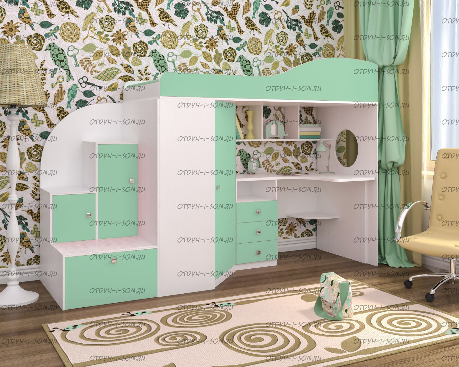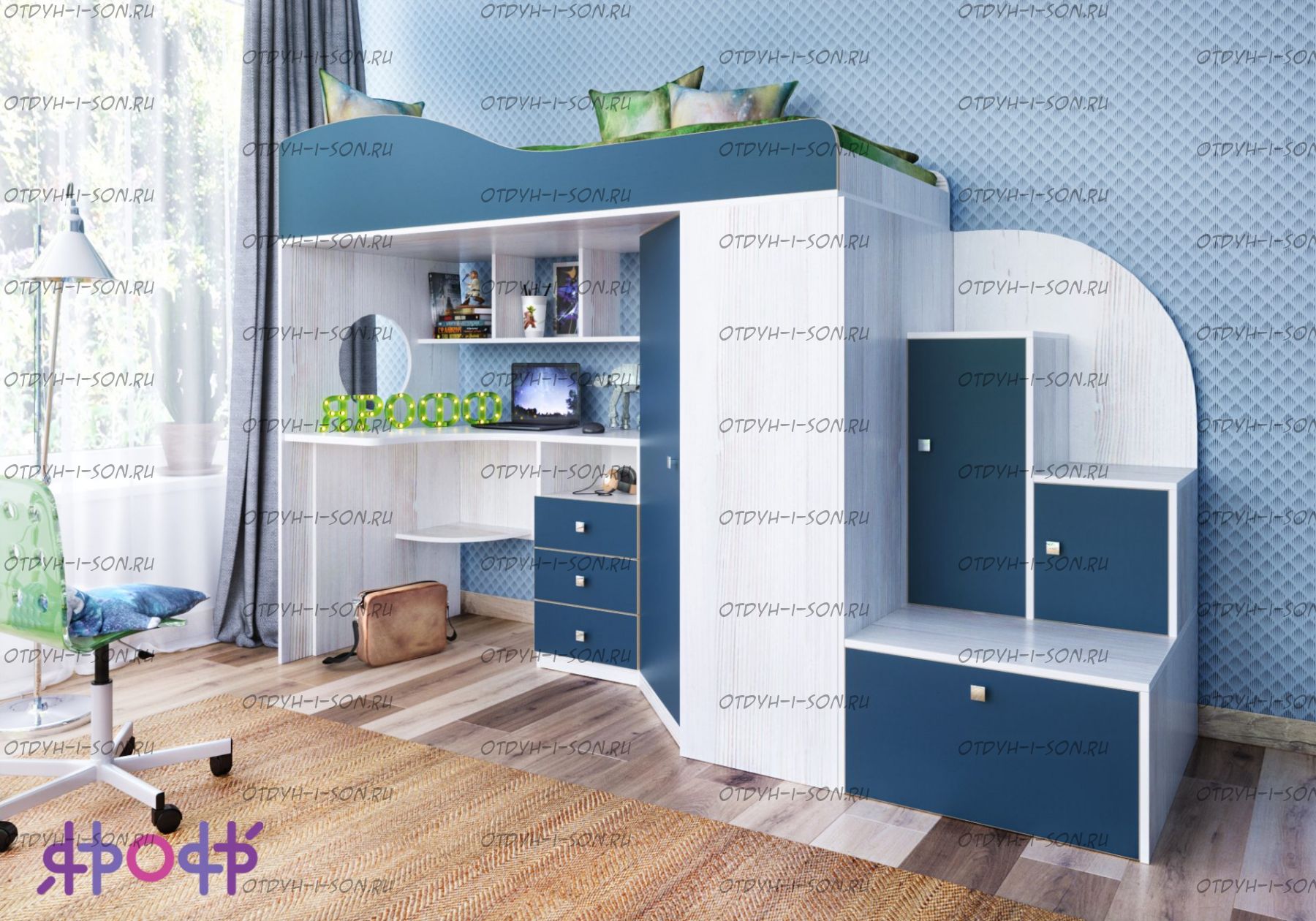 Кровать-чердак Кадет №1 с лестницей-тумбой от фабрики Ярофф. Комплектация: Кровать-чердак КАДЕТ Вместительный, встроенный шкаф, Вместительная тумба-лестница с ящиками для игрушек Характеристики: Верхнее спальное место 80х190 см. Габаритные размеры: Размер: Д2564 × Г832 х В1716 мм. Вес: 240 кг Объем: 0,4м3 Кол-во пакетов: 5шт. Материалы: кромка АБС Цвета корпуса: Дуб молочный, венге, орех донской, вишня, бодего темный, белое дерево. Цвета фасада: розовый, оранжевый, ирис, лайм, голубой, зеленый, бежевый, красный, бодего темный, дуб молочный, венге, вишня, орех донской, белое дерево.