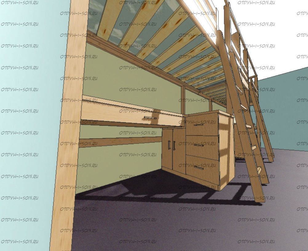 Кровать-чердак Кадет №4А с рабочей зоной