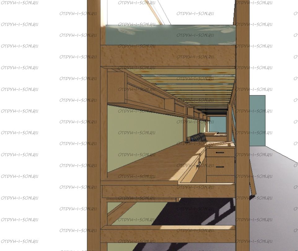 Кровать-чердак Кадет №4В с рабочей зоной