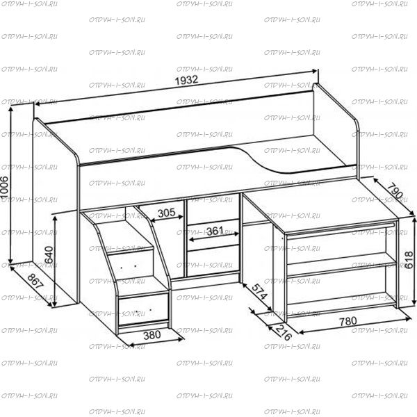 Кровать-чердак Кузя-5 Характеристики: Размер верхнего спального места: 80х190 см. Внешние габариты (ДхШхВ): 1932х1050х1006 мм Гарантия: 2 года Материал ЛДСП Высота борта: Ширина лестницы: Складская программа Вес: Объем: Цвет корпуса: яблоня, венге, орех, ольха, дуб молочный, бук. Цвет фасада: бук, яблоня, дуб молочный, венге, орех, ольха, ясень шимо светлый, ясень шимо темный, оранжевый, зозовый, синий, зеленый, ваниль. Любой цвет корпуса Вы можете скомбинировать с любым цветом фасада. К нижней кровати вы можете приобрести дополнительный съемный бортик, который убережет ребенка от падения.