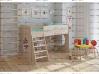 Детская мебель Легенда является идеальным вариантом для детей младшего возраста. Под спальным местом находится игровая зона. Ступени лестницы изготавливаются из натуральной древесины. Комплект универсальный, шкаф может быть установлен как с одной, так и с другой стороны. Лестницу можно установить спереди, либо с одной из сторон.