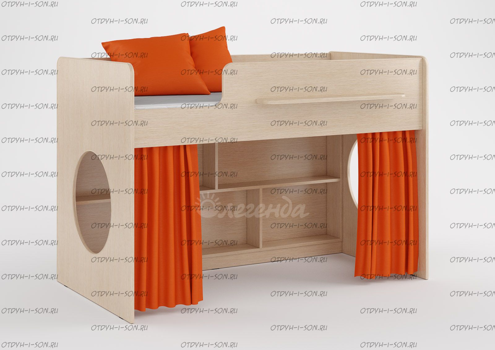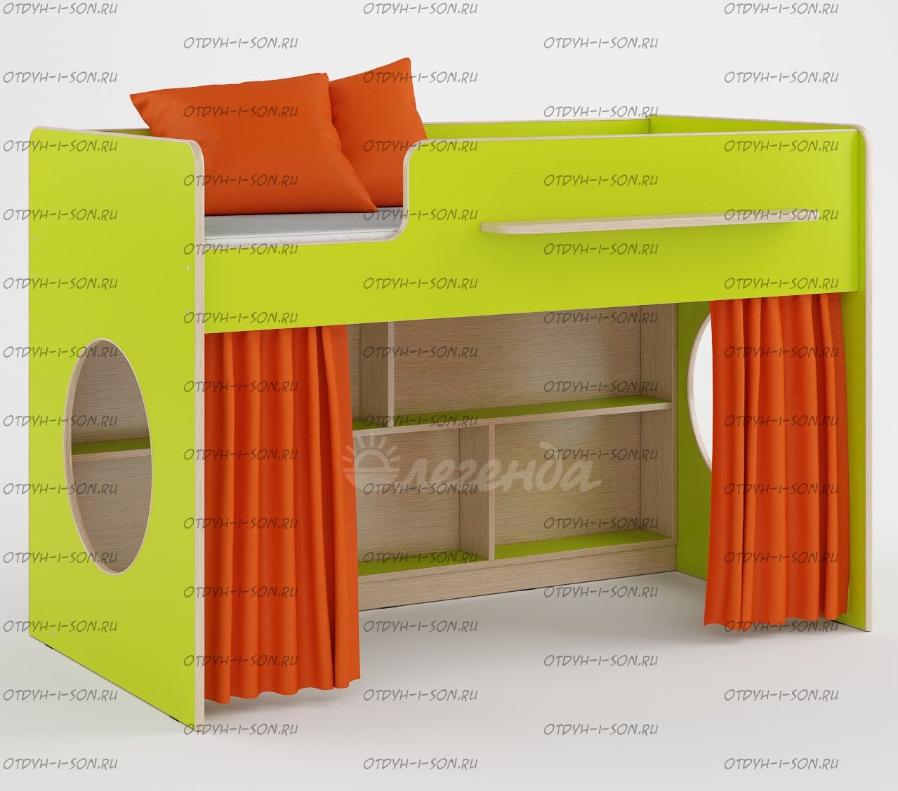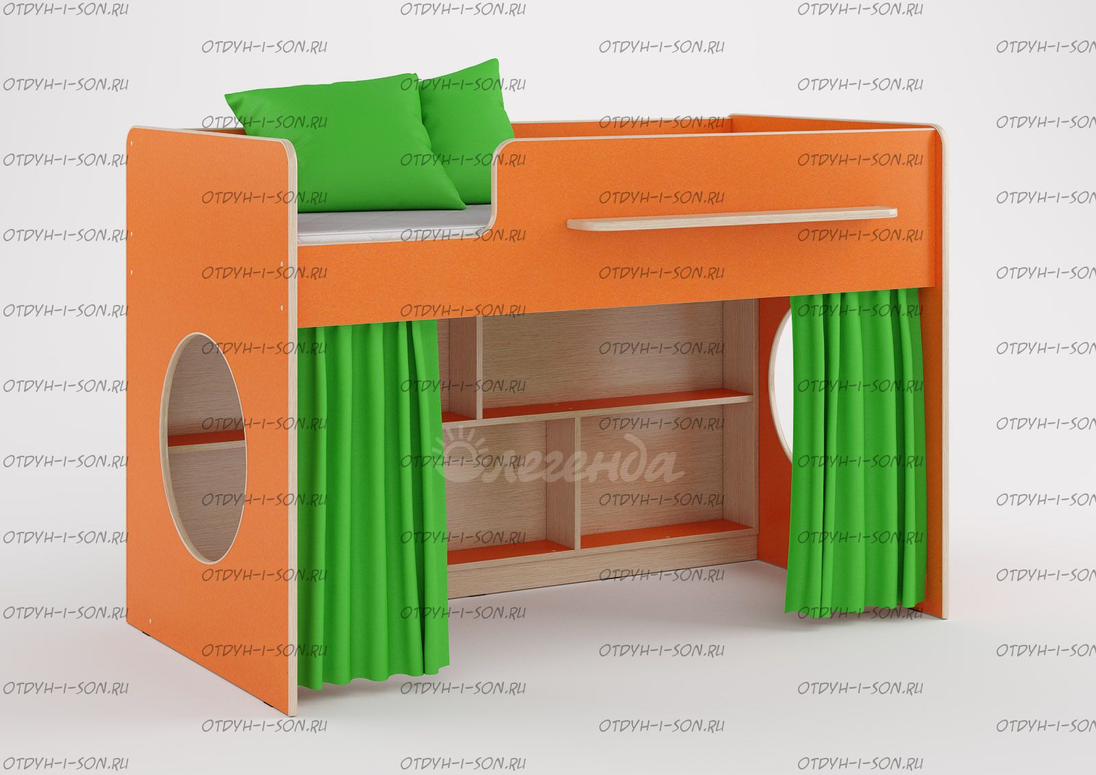 Кровать-чердак Легенда-22 Характеристики: Размер спального места: 80Х160 см. Внешние габариты (ДхШхВ): 1642×1255×1128 мм. Корпус: ЛДСП, 16 мм. Высота изголовья: по запросу Высота изножья: по запросу Высота днища: по запросу Нестандарт: нет Вес: 62 кг. Объем: 0,14 м3 Кол-во упаковок: 3 шт. Цвет корпус и фасад на выбор (кровать может быть однотонная): Венге светлый, Голубой лен, Оранж, Лайм. Роз., белый Предоплата: нет Комплектация: Кровать мини-чердак Легенда-22, 1842×900×1128 Стеллаж встроенный Шторки докупаются отдельно
