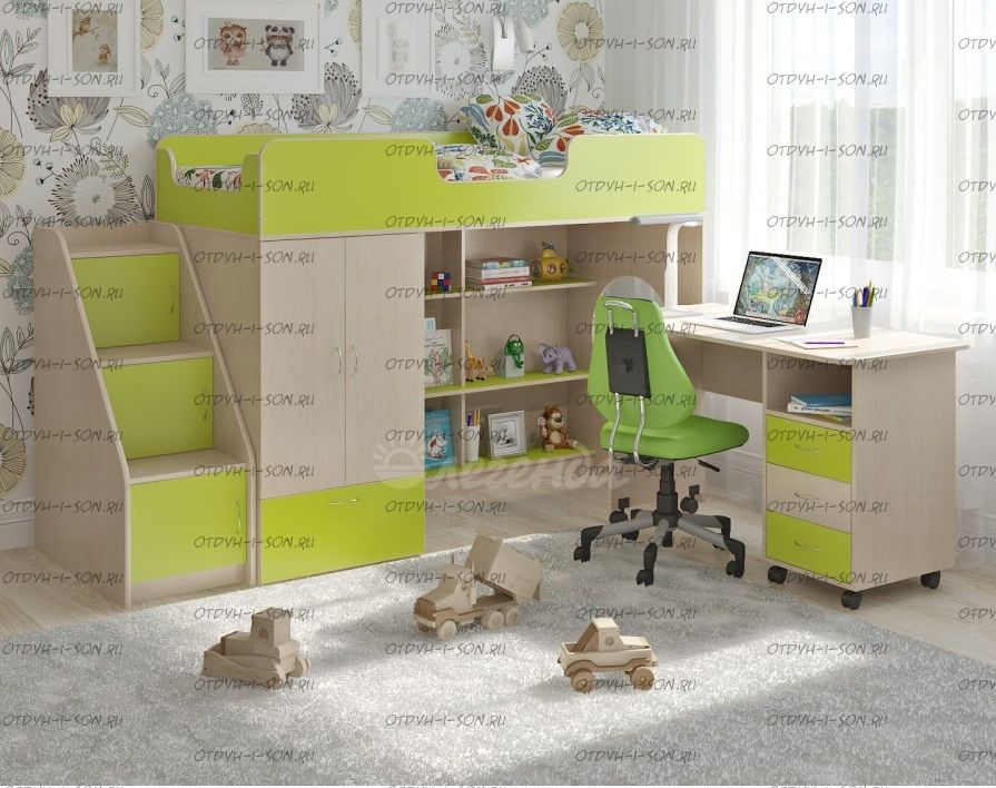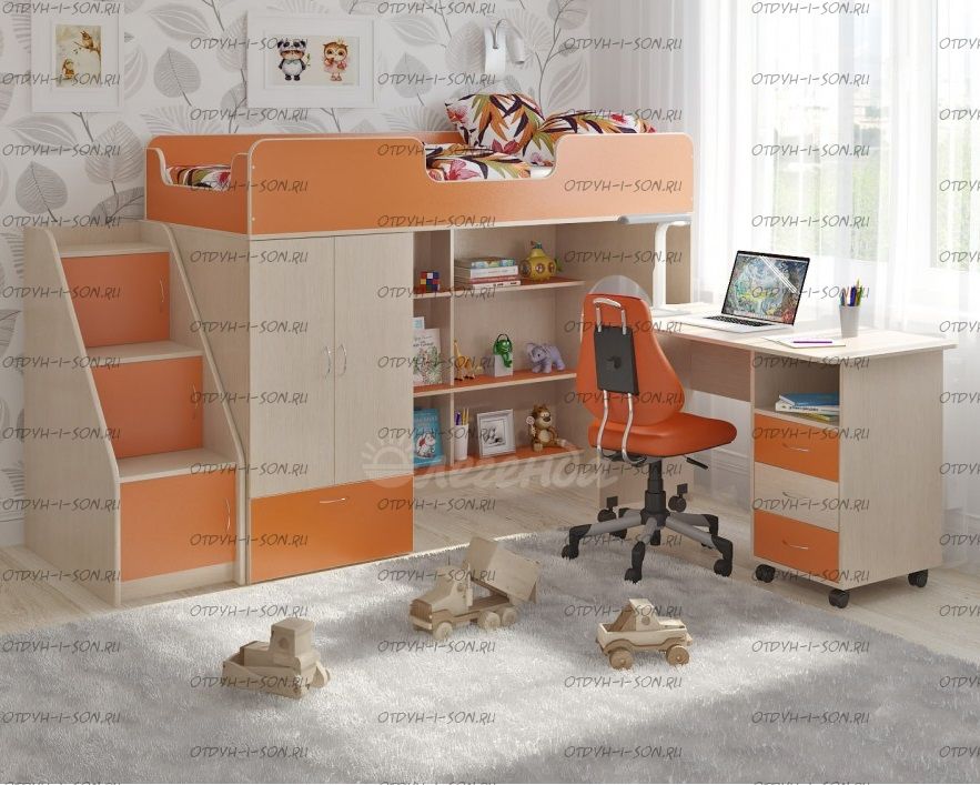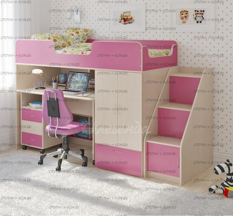 Кровать-чердак Легенда-3.6 от ООО "Детская мебель". Комплектация: кровать-чердак Легенда-3 (Д×Ш×В): 834 × 2278 × 1395 мм. лестница угловая Легенда ЛУ-11 стол Легенда фасады к лестнице докупаются отдельно Характеристики: Размер спального места 80Х180 см. Внешние габариты комплекса (указаны без лестницы) (Д*Ш*В): Материал: ЛДСП Универсальность: Да. Комплект универсальный, собирается, как на правую, так и на левую сторону Вес: Объем: Цвет корпуса: ольха, венге светлый Цвет фасада: венге светлый, ольха, венге темный, голубой, оранжевый, розовый, лайм