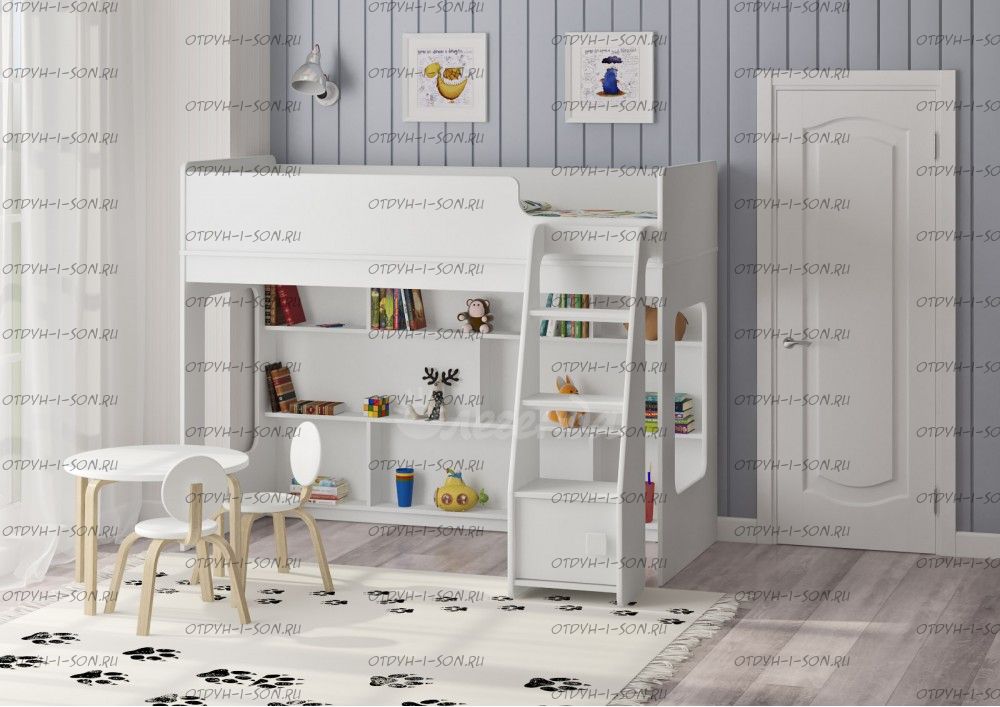 Кровать-чердак Легенда 42.2.1 КУПОНЫ НА ПОВТОРНУЮ ПОКУПКУ!!! Характеристики: Размер спального места: 75х175 см Внешние габариты (ДхШхВ): 1790 × 808 × 1405 мм Высота борта: Ширина лестницы: Выступ лестницы: Рекомендуемая высота матраса: 6-15 см Комплект универсальный, месторасположение шкафа определяется при сборке Лестница может быть установлена с фасадной или с боковой стороны стороны кровати Вес: Объем: Цвет корпуса: белый Цвет фасада: белый, лен голубой, розовый, лайм