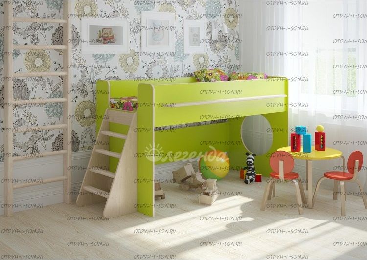 Детская мебель Легенда является идеальным вариантом для детей младшего возраста. Под спальным местом находится игровая зона. Ступени лестницы изготавливаются из натуральной древесины. Комплект универсальный, шкаф может быть установлен как с одной, так и с другой стороны. Лестницу можно установить спереди, либо с одной из сторон.