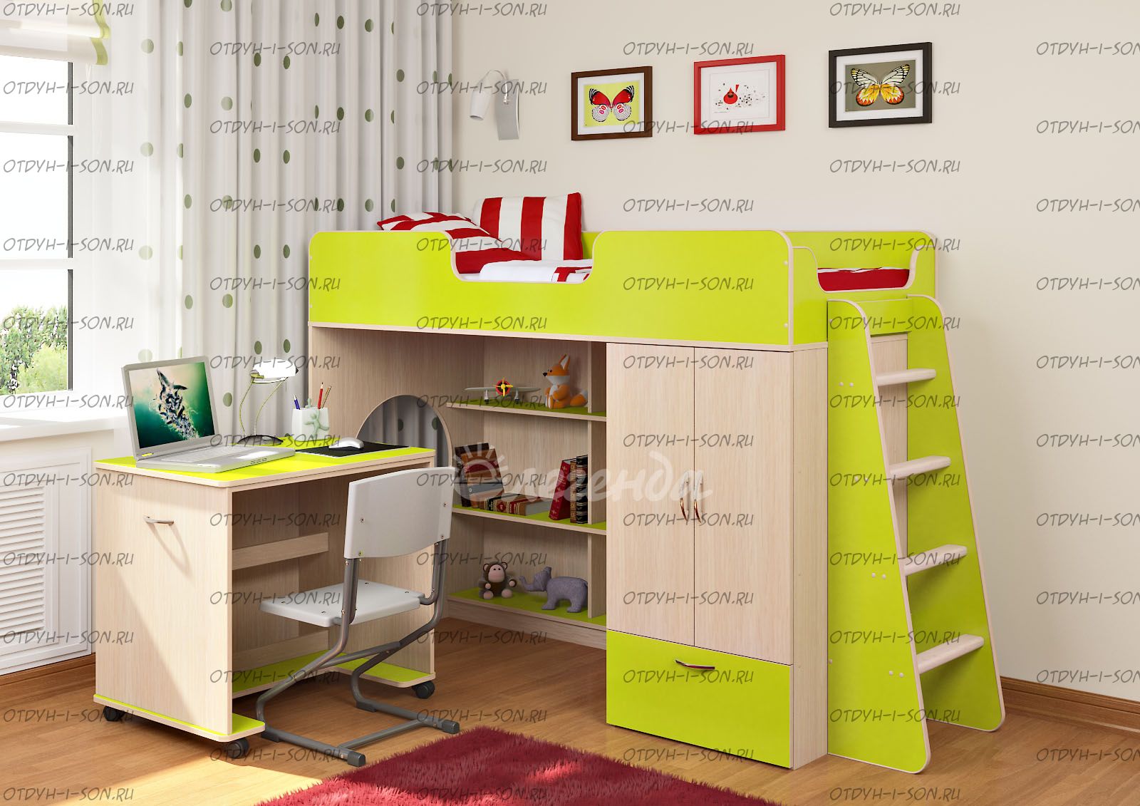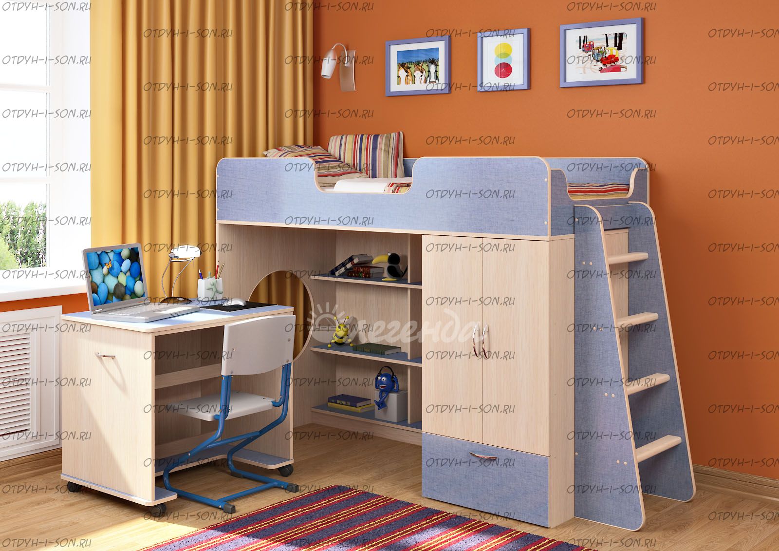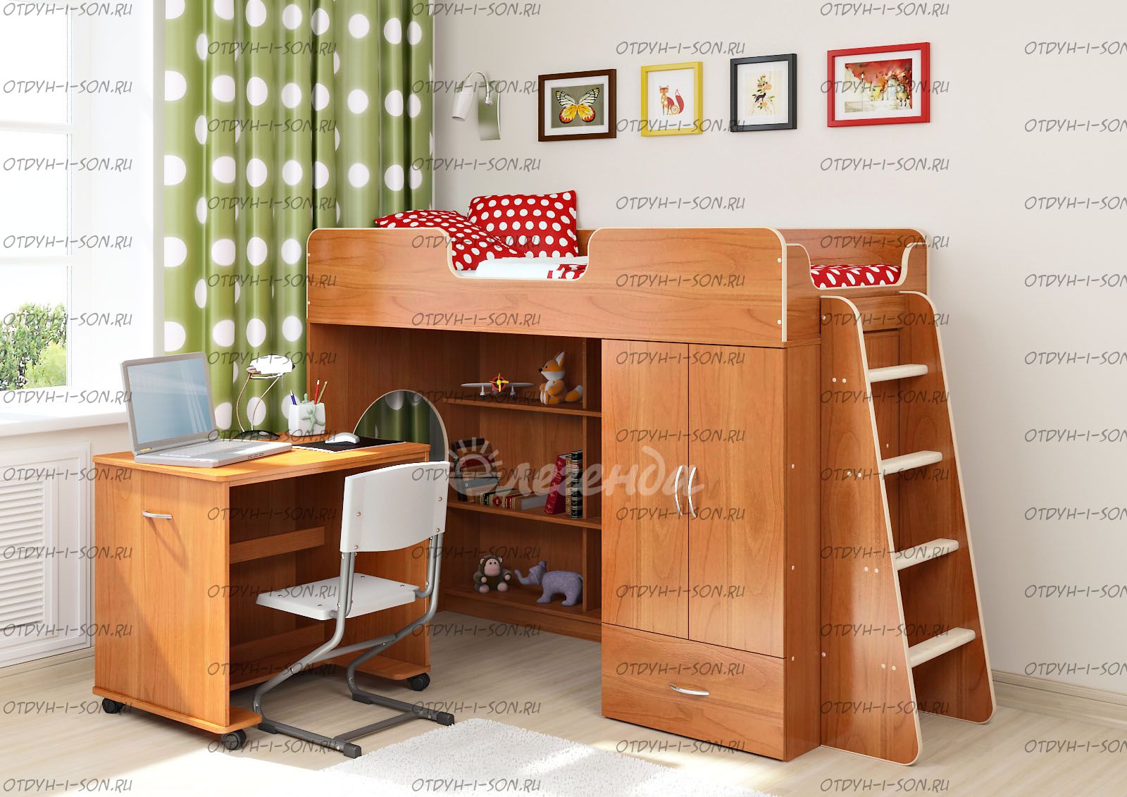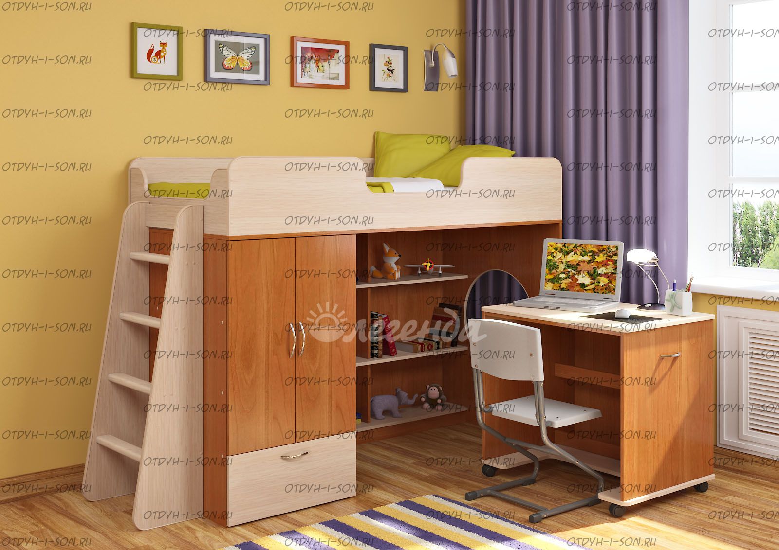 Детская мебель Легенда-ЛК3.2 - это недорогая, компактная и удобная деткая кровать-чердак с игровым местом и встроенными полками.
