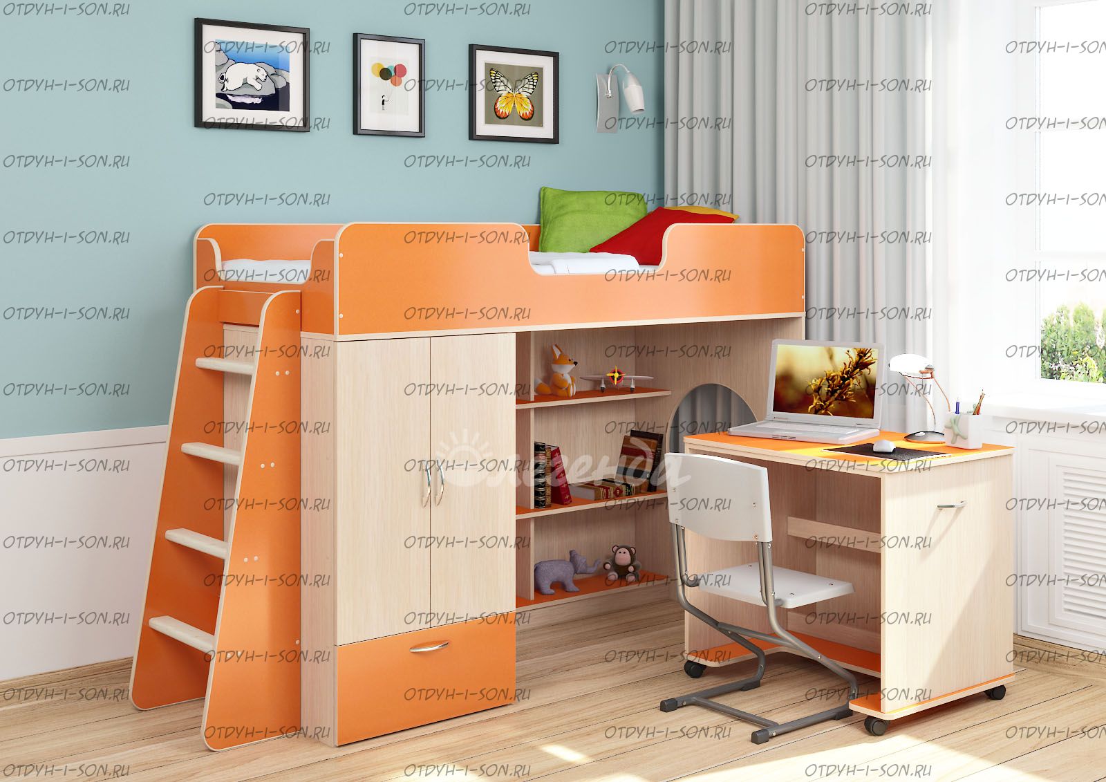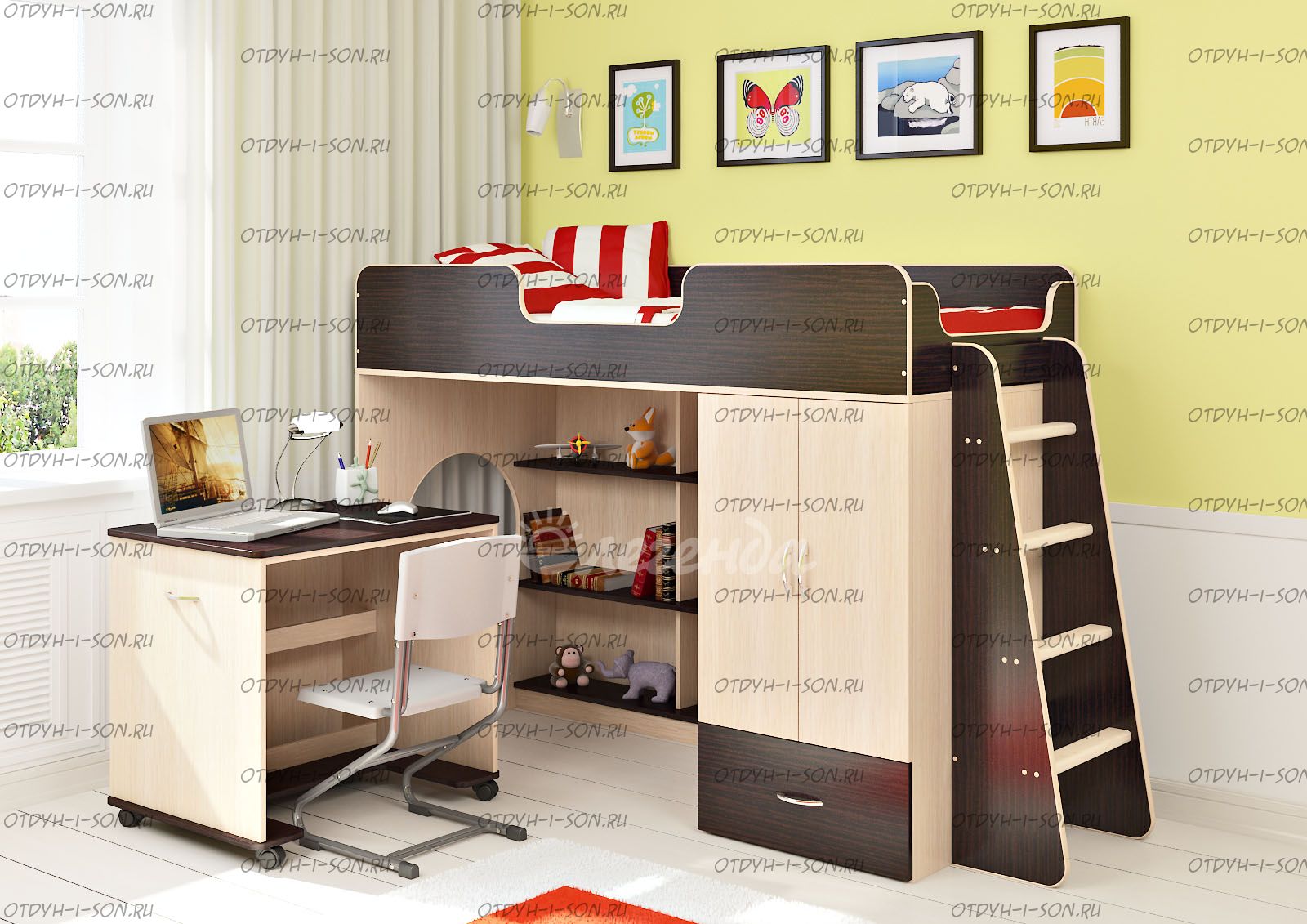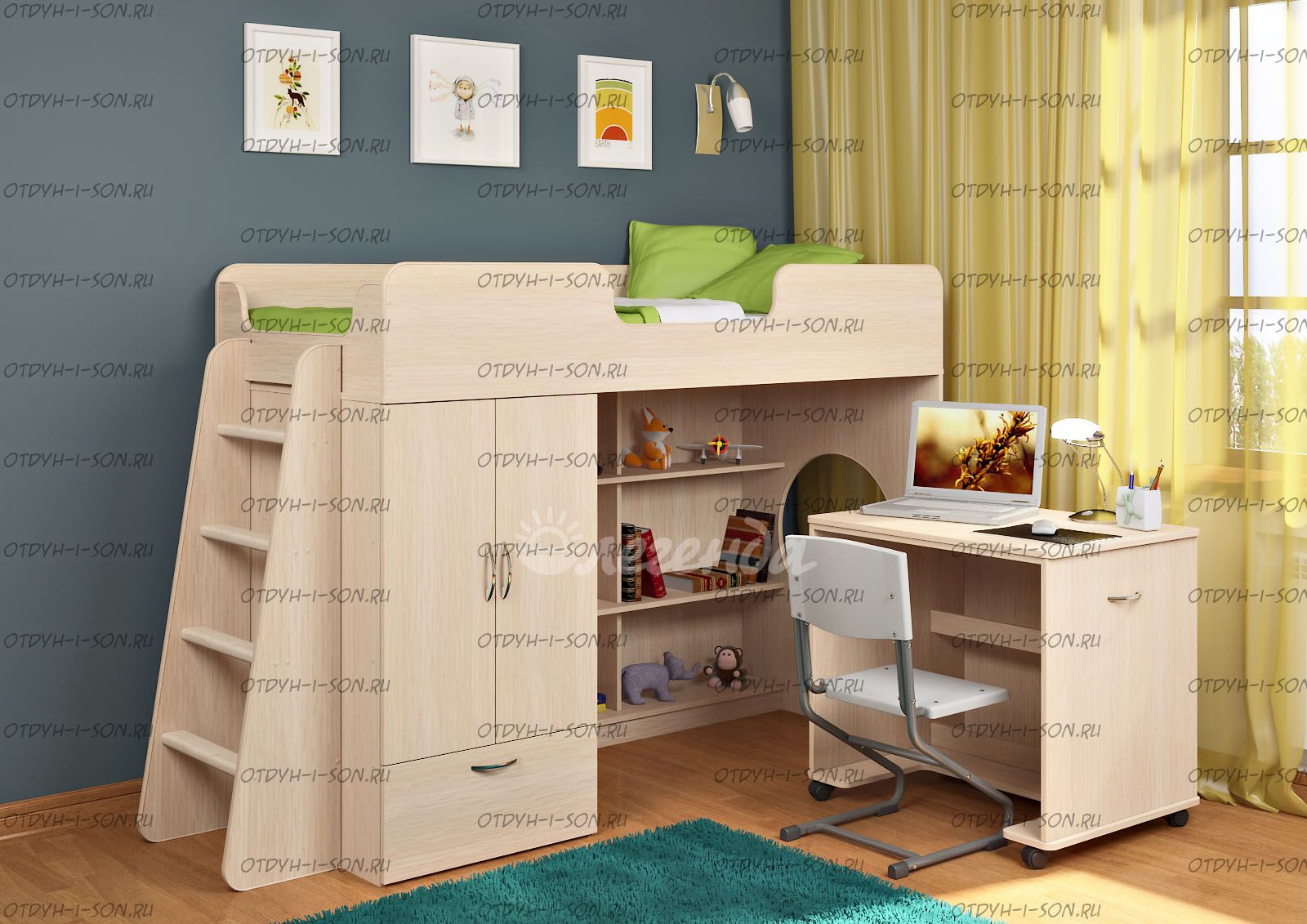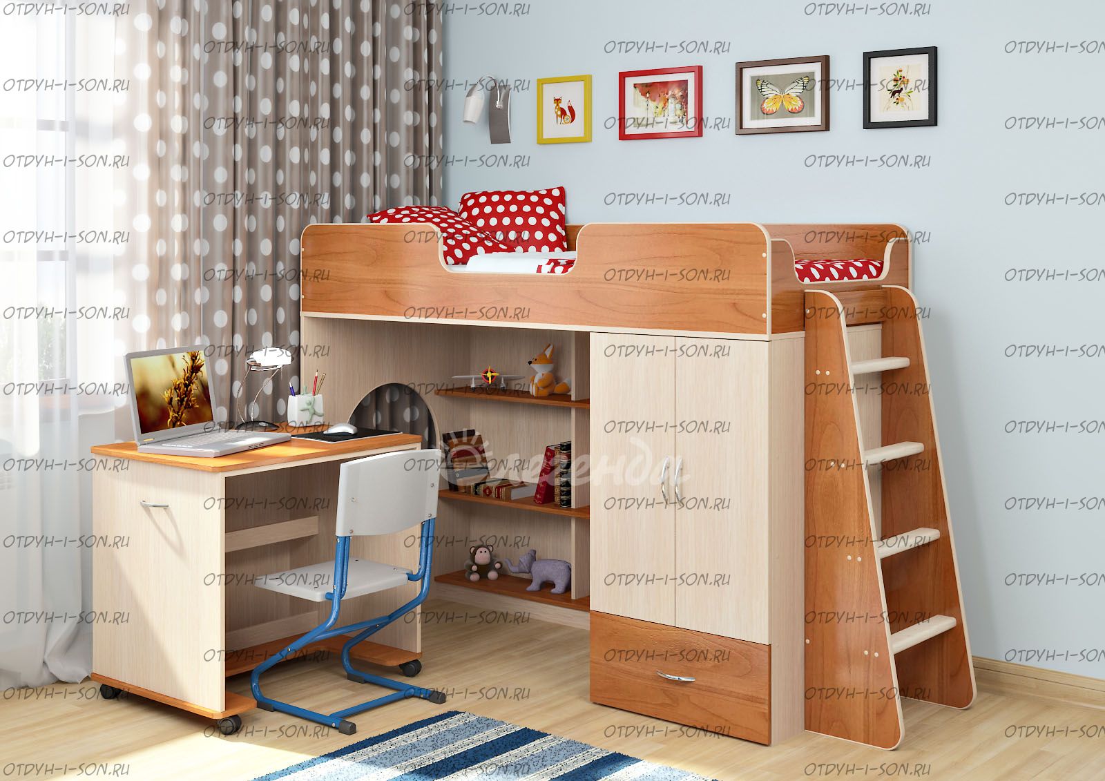 Детская мебель Легенда-ЛК3.2 - это недорогая, компактная и удобная деткая кровать-чердак с игровым местом и встроенными полками.