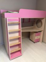 - В кровати-чердак Легенда-4.0 реализована концепция 4 в одном: вместительный двухсекционный шкаф для платья и белья, кровать с высокими бортами, а так же удобный письменный стол