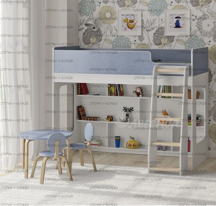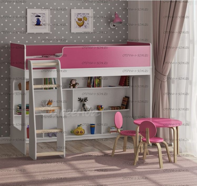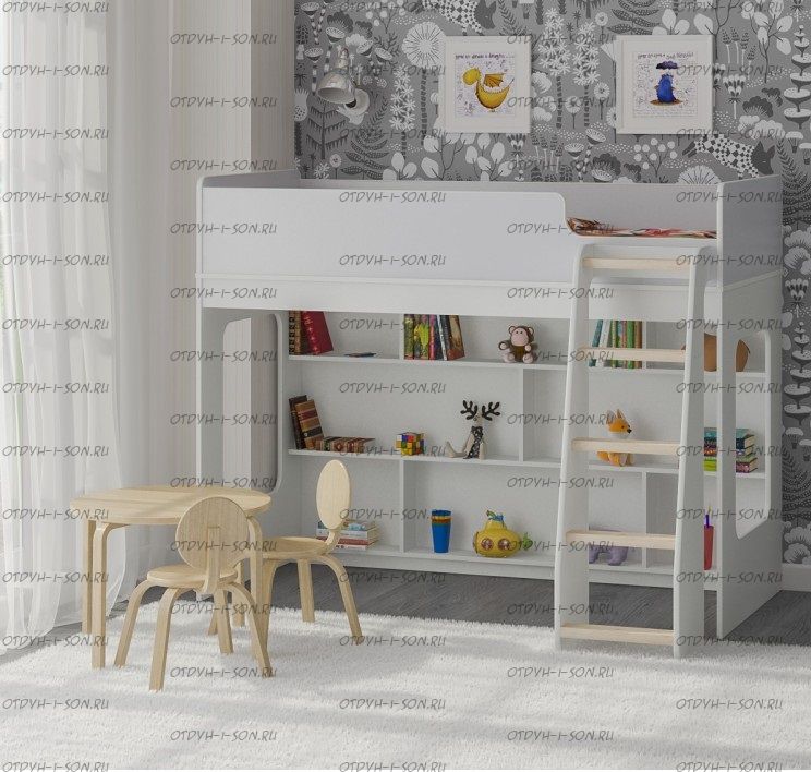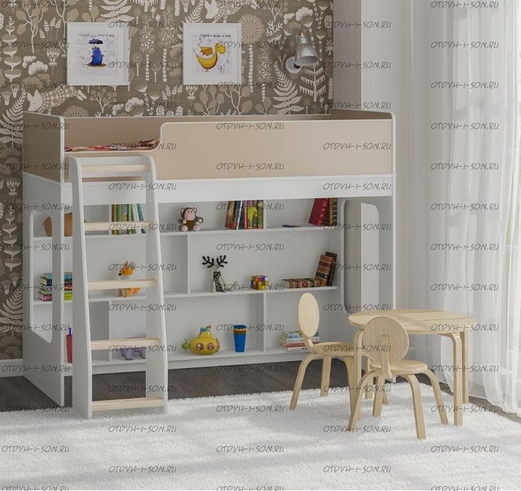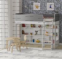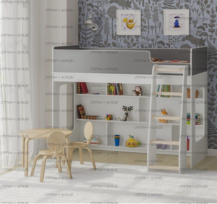 Внизу располагается игровая зона с полками – свой уголок для ребенка.