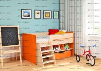 Детская мебель Легенда-6 является идеальным вариантом для детей младшего возраста. Под спальным местом находится игровая зона. Ступени лестницы изготавливаются из натуральной древесины. Комплект универсальный, шкаф может быть установлен как с одной, так и с другой стороны. Лестницу можно установить спереди, либо с одной из сторон.