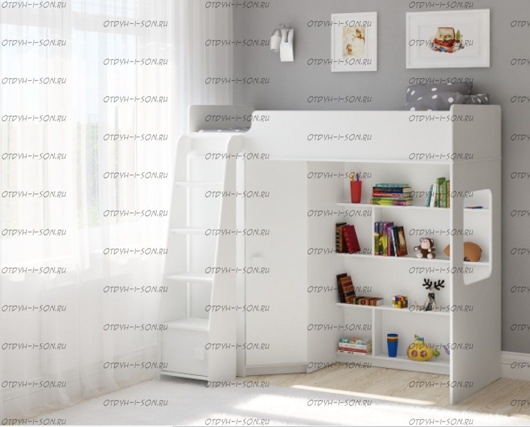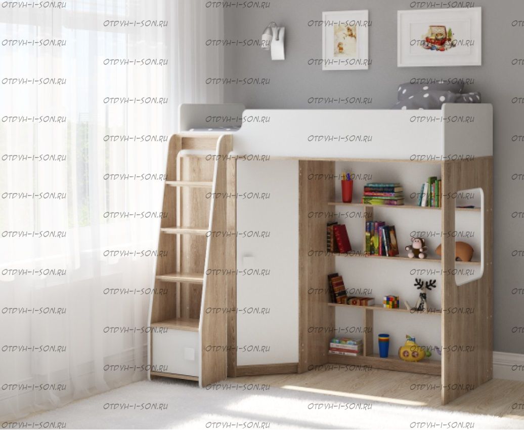 Кровать-чердак Легенда B601.1 Характеристики: Размер спального места: 75х175 или 75х190 Внешние габариты (ШхДхВ): 116,2 х 179 х 167,7 По Вашему выбору комплект может быть собран как на левую, так и на правую сторону. Цвета: белый или сонома-светлый/белый