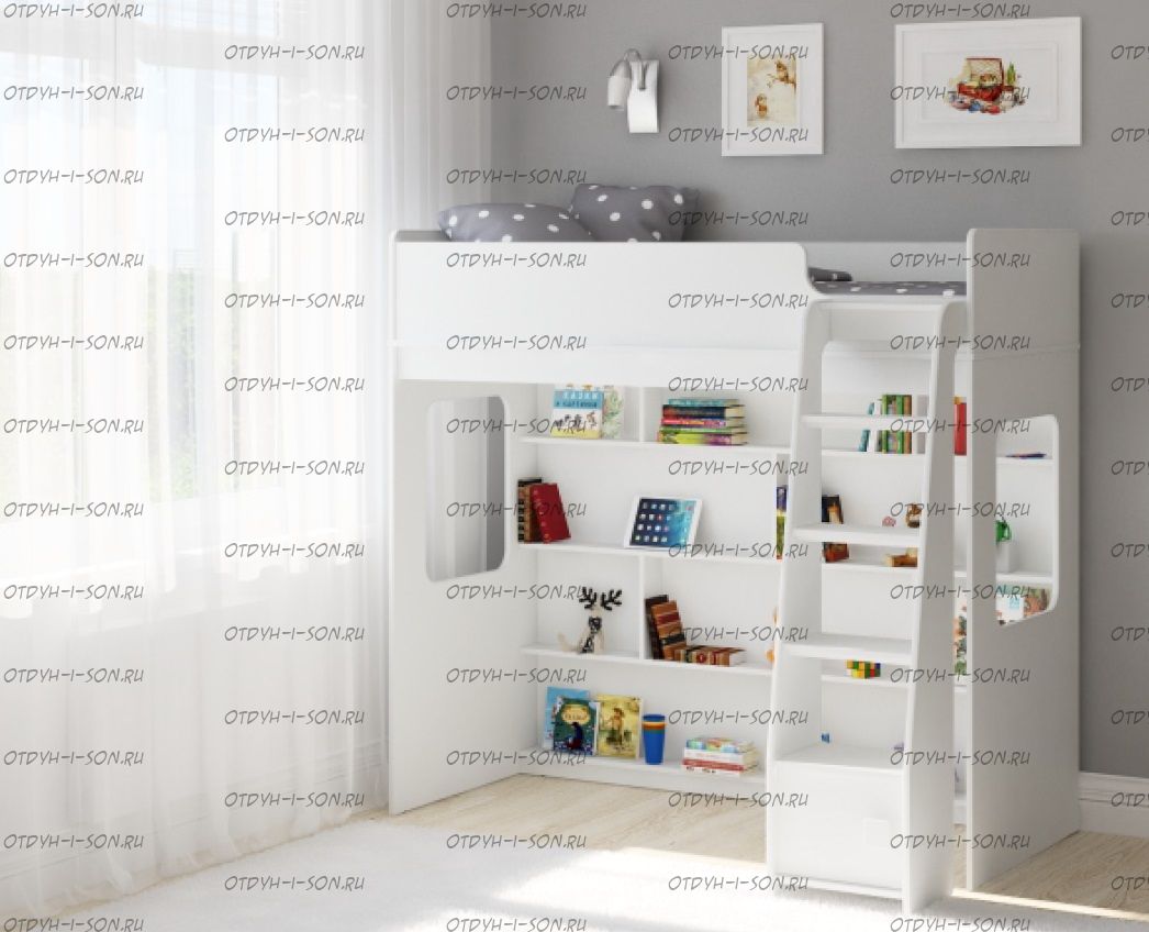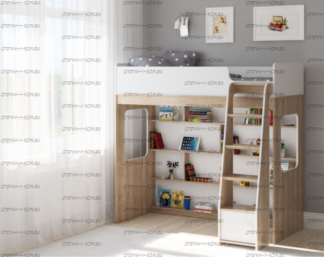 Кровать-чердак Легенда C601.1 Характеристики: Размер спального места: 75х175 или 75х190 Внешние габариты (ШхДхВ): 116,2 х 179 х 167,7 По Вашему выбору комплект может быть собран как на левую, так и на правую сторону. Цвета: белый или сонома-светлый/белый