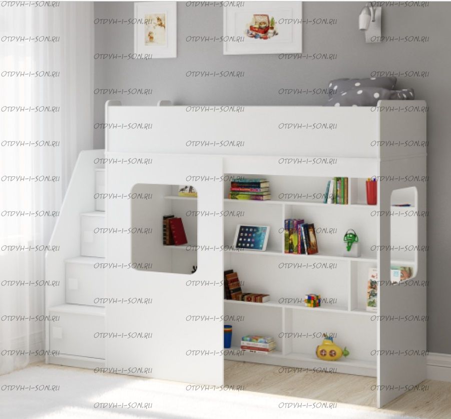 Кровать-чердак Легенда C604.3 Характеристики: Размер спального места: 75х175 или 75х190 Внешние габариты (ШхДхВ): 80,2 х 224,6 х 167,7 По Вашему выбору комплект может быть собран как на левую, так и на правую сторону. Цвета: белый или сонома-светлый/белый