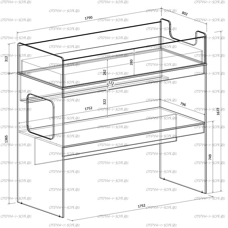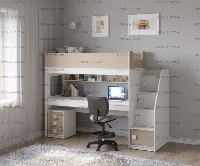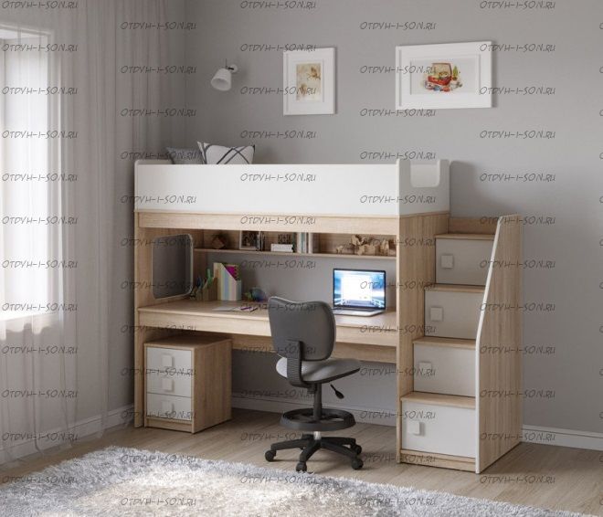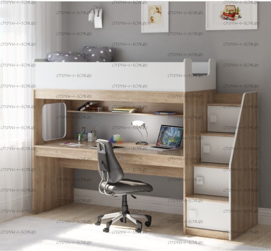 Кровать-чердак Легенда C606.3 Характеристики: Размер спального места: 75х175 или 75х190 Внешние габариты (ШхДхВ): 80,2 х 224,6 х 167,7 По Вашему выбору комплект может быть собран как на левую, так и на правую сторону. Цвета: белый или сонома-светлый/белый
