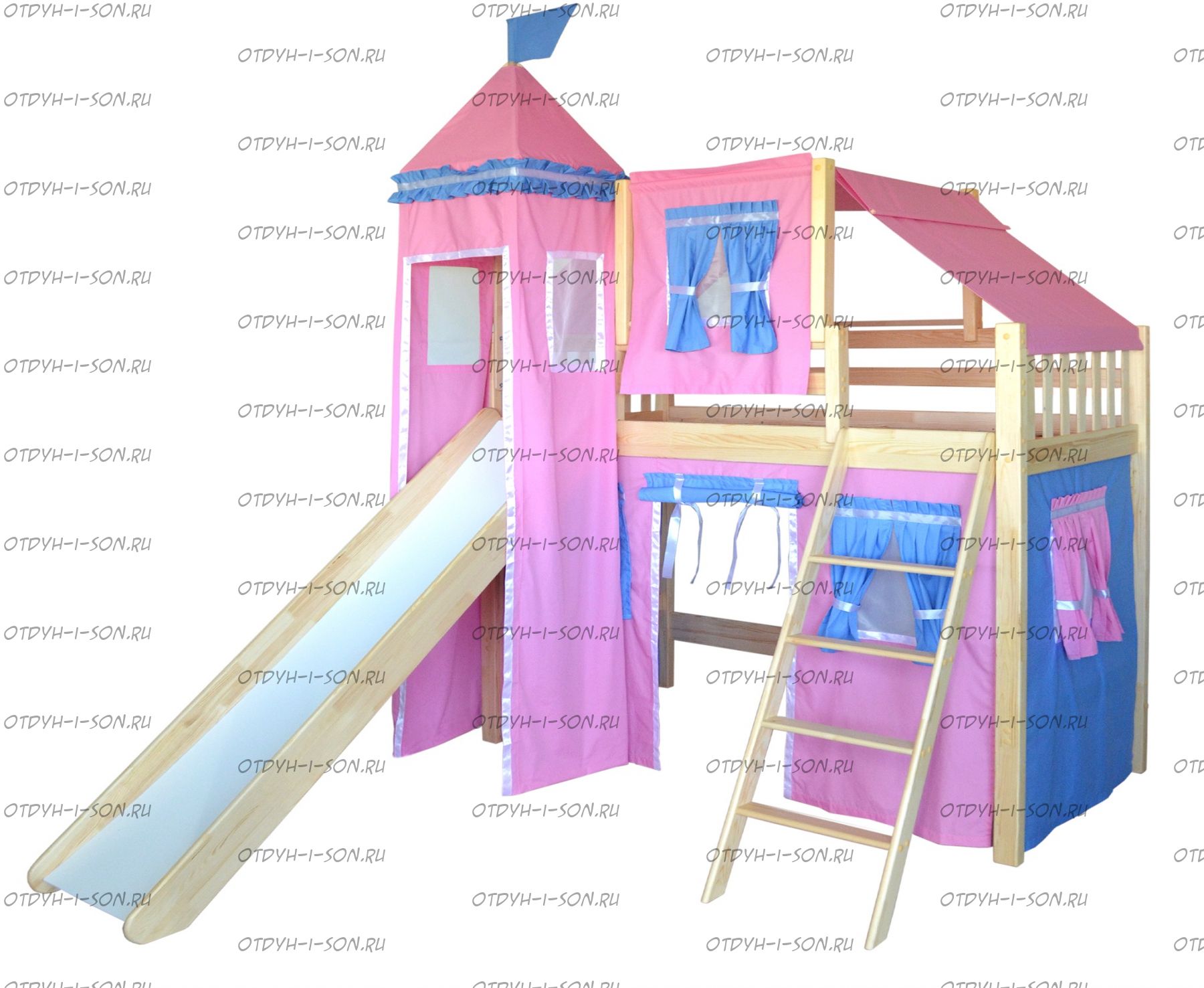 Кровать-чердак Рыцарь-3 - это детская кровать из массива дерева от МебельХолдинг.