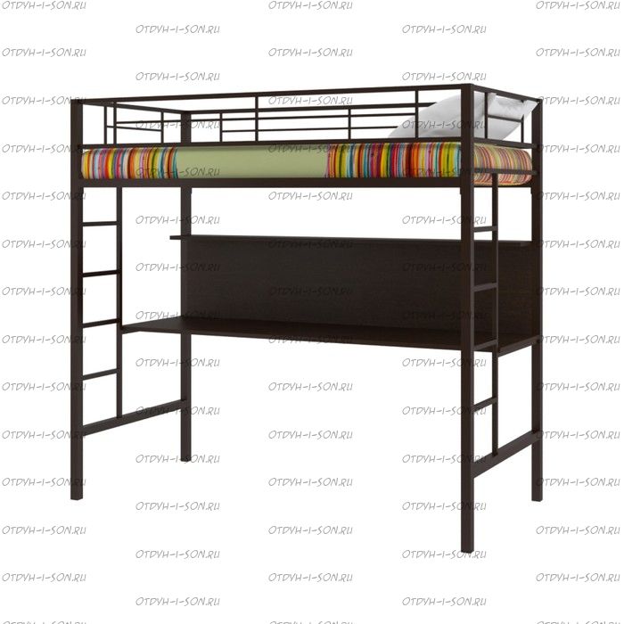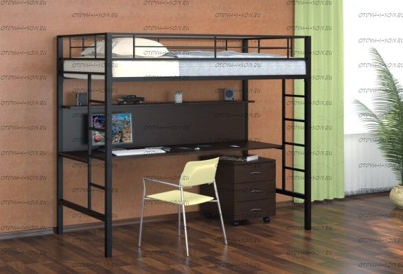 Кровать-чердак с тумбой Севилья-1 от фабрики Формула мебели. Комплектация: Кровать-чердак Севилья-1 Тумба Дельта 24.2 (в зависимости от комплектации) Характеристики: Размер спального места: 90Х190 см. Внешние габариты (ДхШхВ): 1980х960х1960 см. Глубина столешницы: 56 см Ширина лестницы: 30 см Материалы каркаса: металл Диаметр трубы каркаса: 40 мм. Основание кровати из металлических лаг шириной 40 мм., расположенных на расстоянии 12,5 см. друг от друга Вес: 60 кг. Объем: 0,4 м3 Максимальная нагрузка на спальное место: 150 кг Кровать поставляется в разобранном виде Цвет: черный, коричневый, слоновая кость