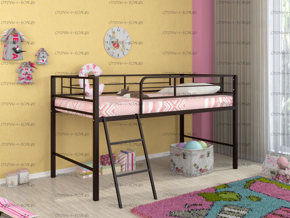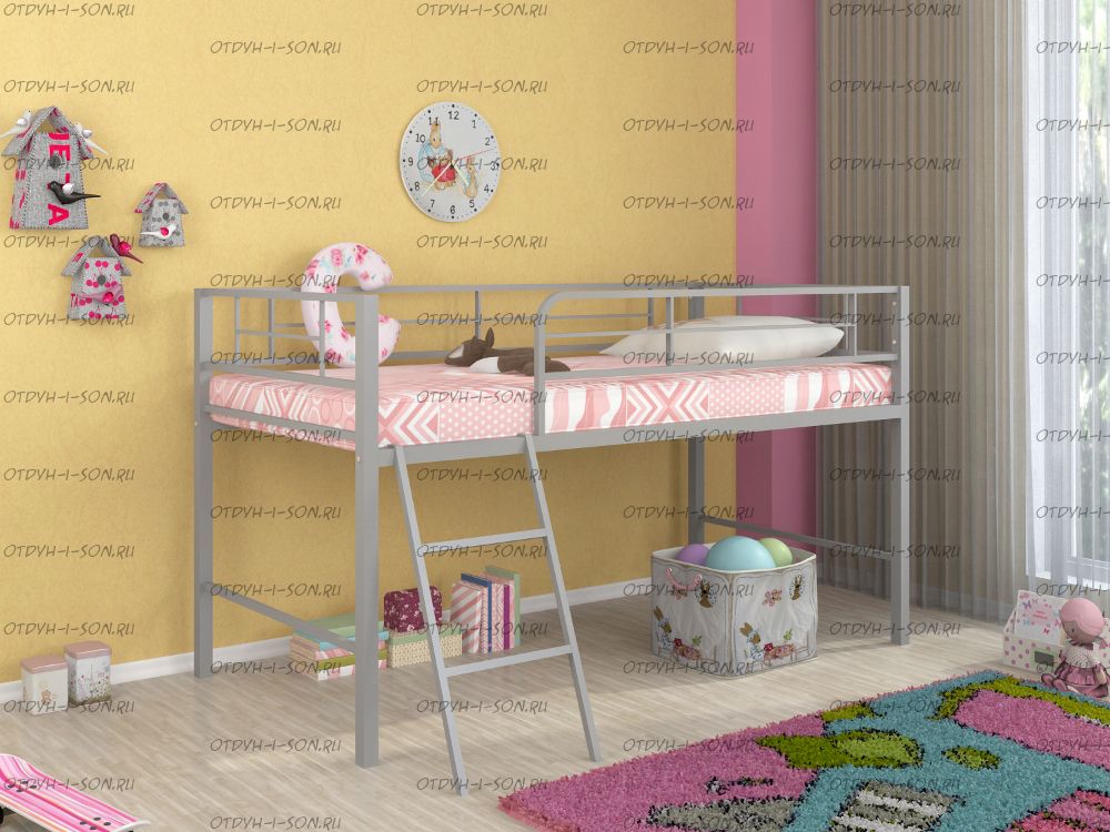 Кровать-чердак Севилья-мини Характеристики: Размер спального места: 90Х190 см. Внешние габариты (ДхШхВ): 1980х1260х1110 см. Материалы каркаса: металл Размер трубы каркаса: 40х40 мм. Вес: 53 кг. Максимальная нагрузка: 180 кг. Кровать поставляется в разобранном виде Цвета: более 5 цветов и сочетаний