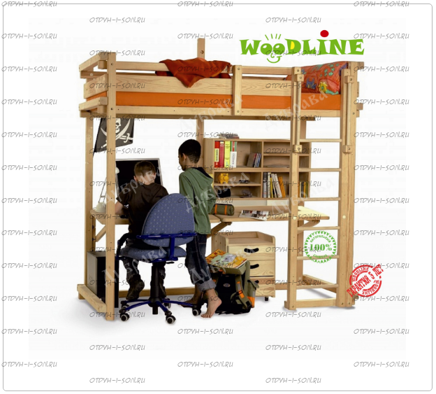 Кровать-чердак Сиэтл №6 массив Характеристики: Размер спального места: Внешние габариты (ШхГхВ): Цвет (морилка): беленый дуб, средний орех, сосна (натуральный), венге, светлый орех, ольха, орех, бук, красное дерево, клен красный, груша Цвет (эмаль) (+20 % от стоимости): фисташковый, белый, черный, темно-зеленый, слоновая кость (белый в бежевый), сиреневый, синий, светло-зеленый, розовый, красный, желтый, дуб молочный (белый в розовый), голубой Производство Владимирской мебельной фабрики, кровать доставляется напрямую от производителя, самовывоз ограничен.