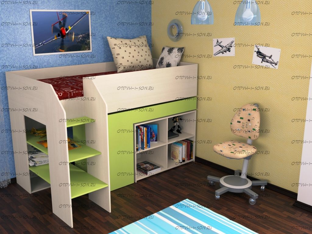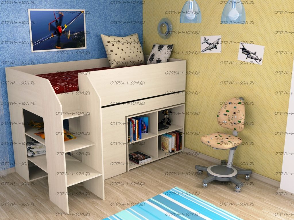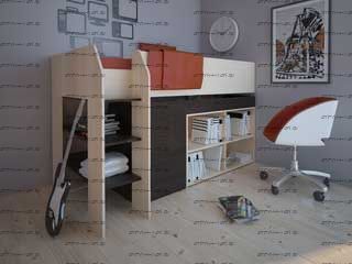 Кровать-чердак Теремок-2 Tехно - это кровать-трансформер, выполненная в современном стиле детская мебель ("Теремок-2" Техно) занимает всего 1,8 м2.