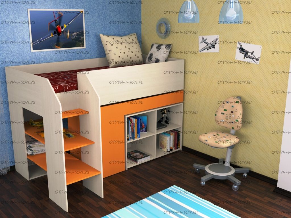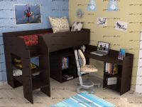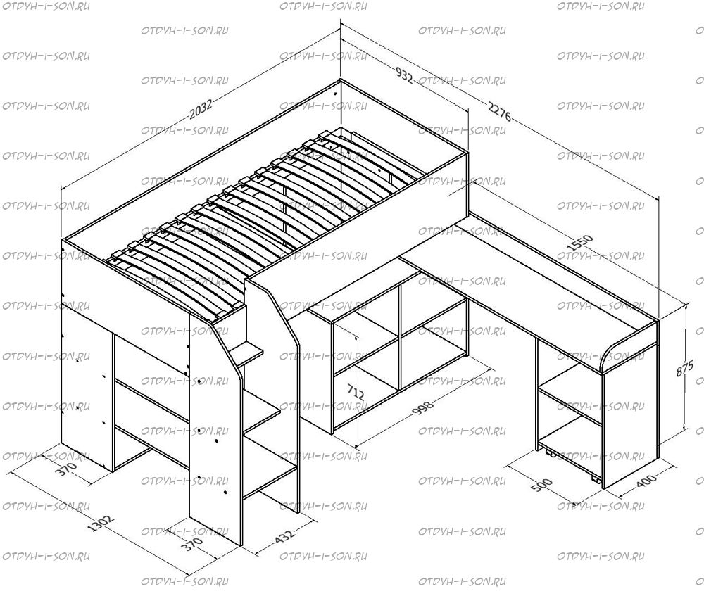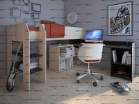Кровать-чердак Теремок-2 Tехно, выполненная в современном стиле детская мебель ("Теремок-2" Техно) занимает всего 1,8 м2. Характеристики: Размер спального места: 90Х200см. Ламельное основание: Да Внешние габариты (ШхГхВ): 2030х1300/2300х1280 мм. Стол на колесиках, выдвигается. ДСП 16 мм, кромка 2 мм, длина самого стола 135 см. Мебель Не универсальная(!): может быть либо правой (стол справа), либо левой (стол слева) Цвета корпуса: дуб молочный, дуб сонома, венге, орех Цвета фасадов: ольха, оранжевый, орех, дуб молочный, голубой, салатовый, крем ваниль, розовый, салатовый, венге, зеленый текстиль, желтый
