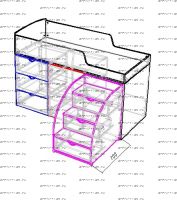 Кровать-чердак Фанки Кидз 14 ФМ Комплектация: Кровать-чердак 14/1 ФМ Секция с комодом 14/4 ФМ Секция с открытыми полками 14/3 ФМ Стол выдвижной 14/5 ФМ Лестница-комод 13/25 ФМ Характеристики: Размер спального места: 70х160 Внешние габариты (ШхГхВ): 1652х2184х1086 Материал: ЛДСП 16 мм (Австрия, Egger). Цвет корпуса: Ольха, Венге, Орех, Дуб кремона Цвет фасада: Розовый, Оранжевый, Крем ваниль, Салатовый, Дуб кремона, Голубой, Венге, Ольха, Орех