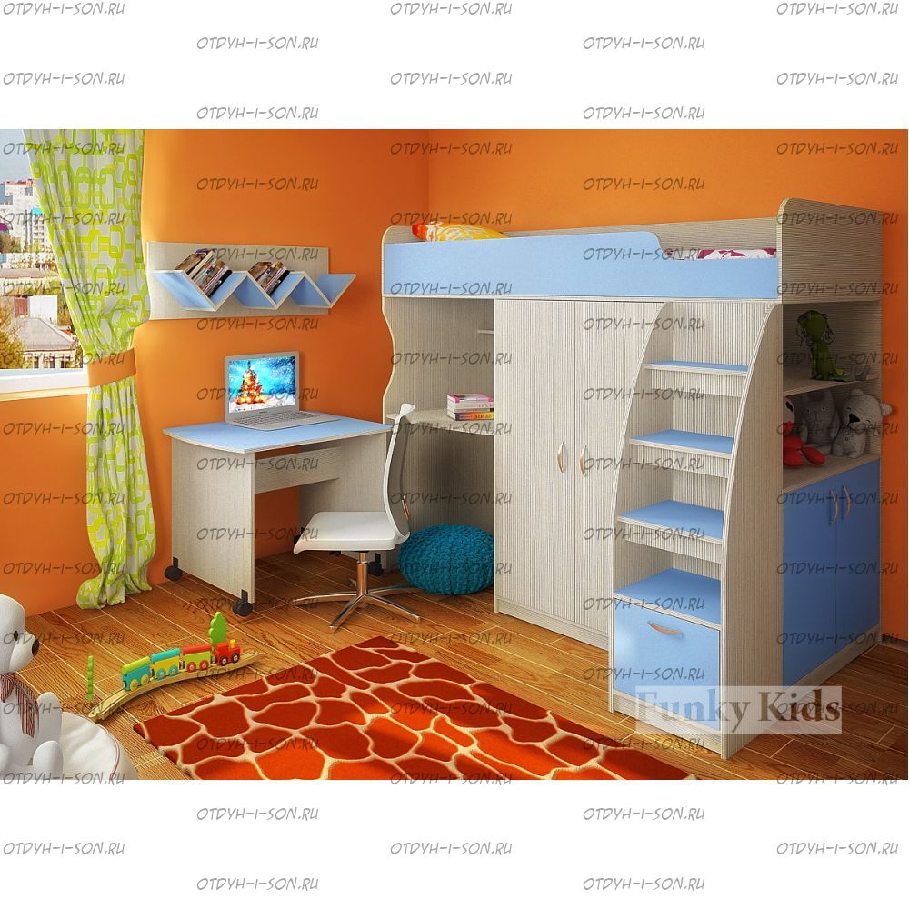 Кровать-чердак Фанки Кидз-18/1 СВ. Кровать может собираться как на левую сторону, так и на правую сторону.