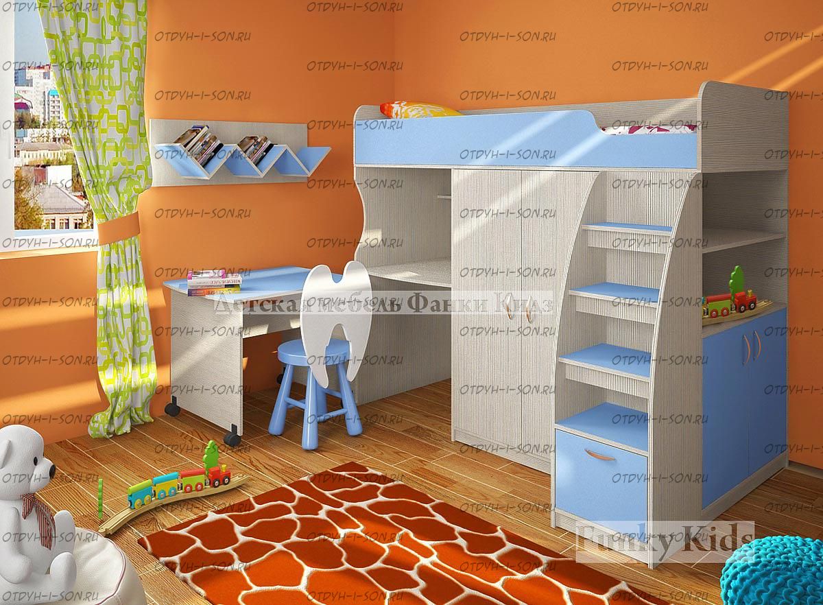Кровать-чердак Фанки Кидз-18/4 СВ. Кровать может собираться как на левую сторону, так и на правую сторону.