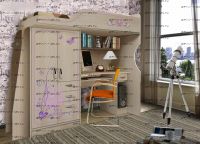 В конструкции предусмотрено верхнее место для сна с безопасным бортиком. Сбоку - лестница. Внизу для ребенка есть двухдверный шкаф и компьютерный стол с полкой для учебников. У модели Фанки Лилак хорошая эргономика и функционал. При желании Вы можете приобрести тумбу-лестницу с ящиками.
