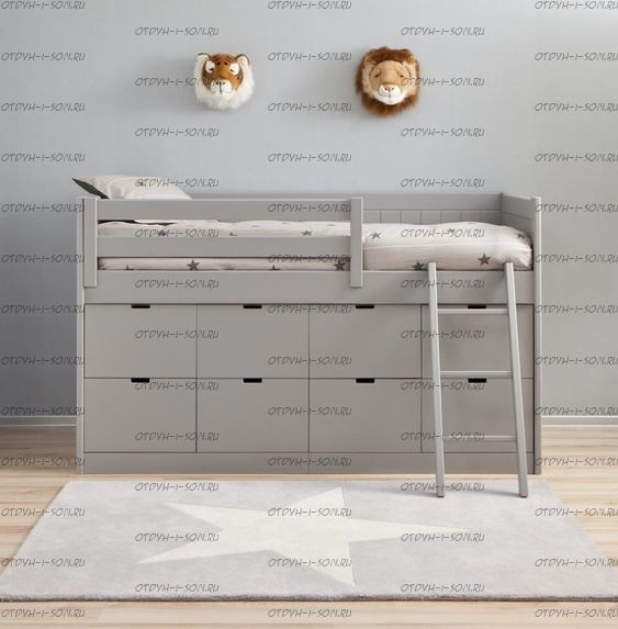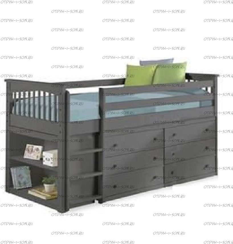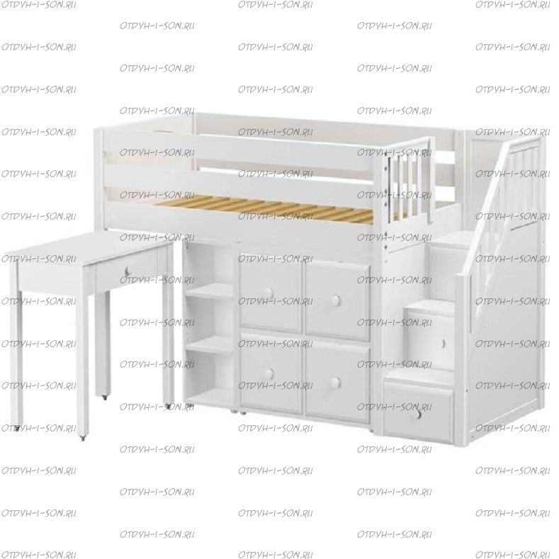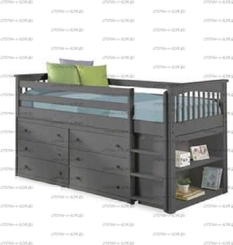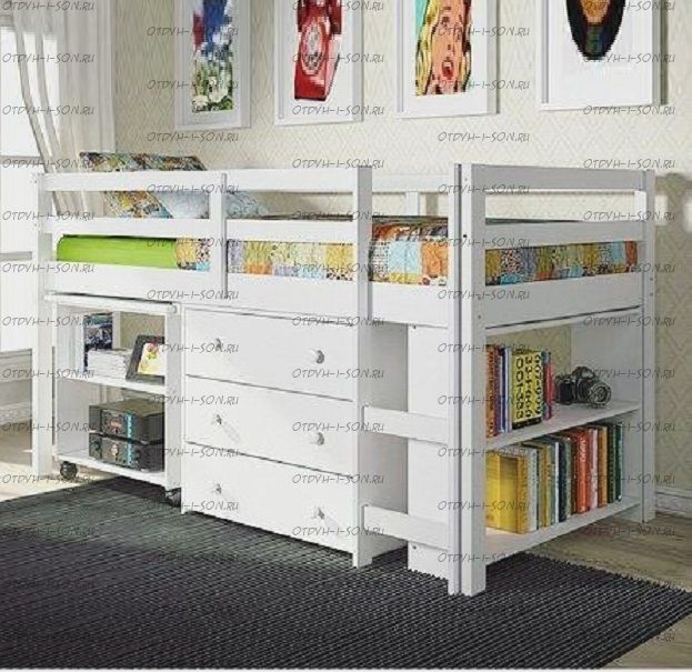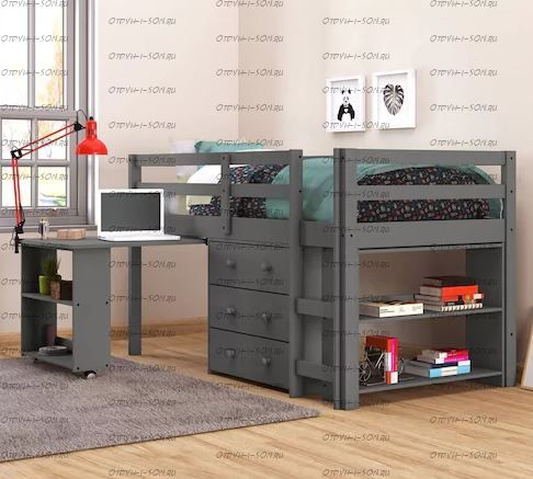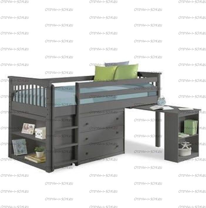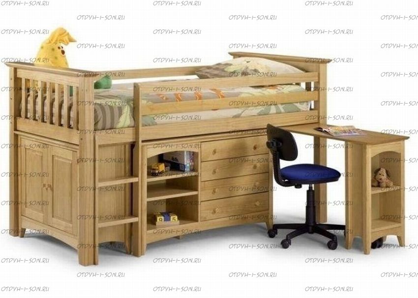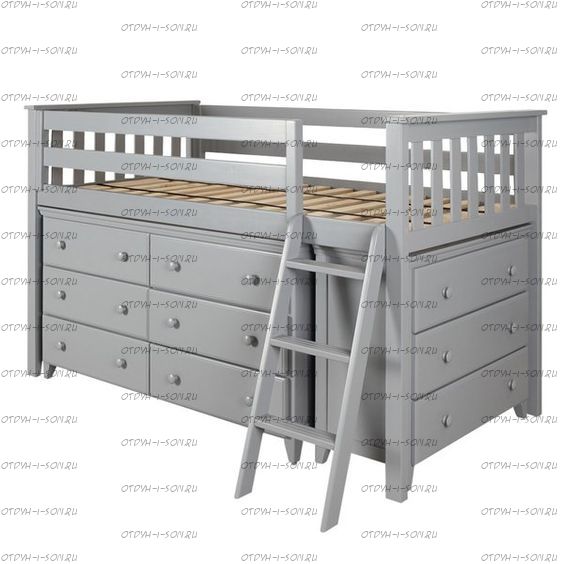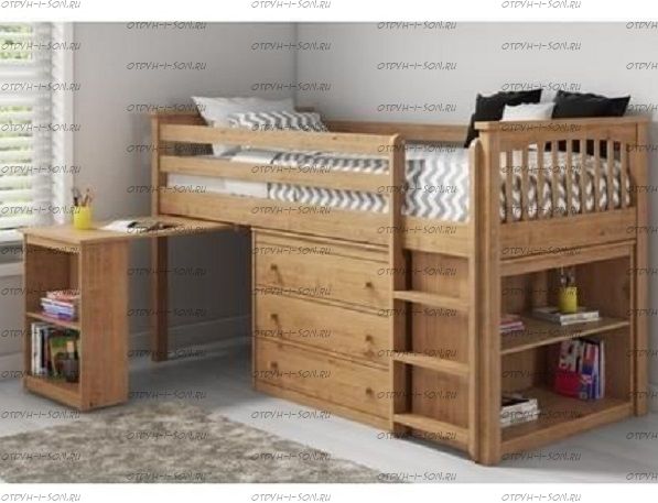 Кровать-чердак Фокси №БИ10 Характеристики: Размер спального места: 80х160, 80х170, 80х180, 90х160, 90х180, 90х190, 90х200 см. и любые другие по Вашему запросу Общая высота: Высота царги: Габаритные Размеры: Характеристика выкатных ящиков: Комплект состоит из 2х ящиков; Мебельная фанера/ Массив дерева; Ящики на роликах; Дно ящика 5мм ДВП; Ящик двигается по полу. К кровати не фиксируется, установка с любой стороны. Масса в упаковке: Объем в упаковке: Материал: массив сосны В базовом варианте с тыльной стороны ящиков декоративной планки не предусмотрено Основание под матрас реечное Внимание: для любой модели кровати ВМК Шале возможно увеличение высоты бортиков кровати! Цвет: орех, бук, венге, груша, дуб, каштан, клен, красное дерево, махагон, ольха, сосна, белый (эмаль), слоновая кость (эмаль)