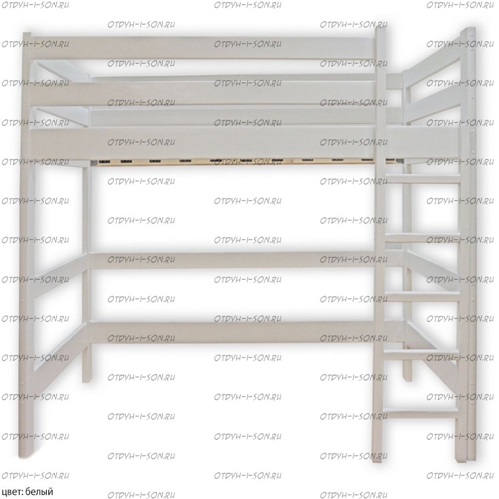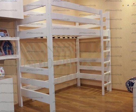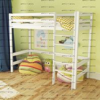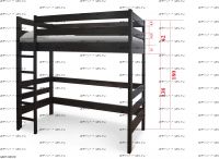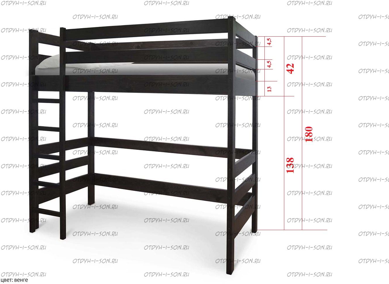 Кровать-чердак Юность Характеристики: Высота кровати от пола: 180см Высота от пола до царги: 138см Высота от пола до основания под матрас: 144 см. Ширина лестницы: 45см Спинка: массив сосны, березовая мебельная фанера 12мм Каркас: массив сосны Основание: поперечные брусья массив, ДВП 4-5мм Размер спального места: 80х160, 80х170, 80х180, 90х160, 90х180, 90х190, 90х200 см. и любые другие по Вашему запросу Высота царги: Габаритные Размеры: Характеристика выкатных ящиков: Комплект состоит из 2х ящиков; Мебельная фанера/ Массив дерева; Ящики на роликах; Дно ящика 5мм ДВП; Ящик двигается по полу. К кровати не фиксируется, установка с любой стороны. Масса в упаковке: Объем в упаковке: Крепления кроватей фабрики ВМК Шале: мебельные стяжки, евроболты, заглушки Материал: массив сосны В базовом варианте с тыльной стороны ящиков декоративной планки не предусмотрено Основание под матрас реечное Внимание: для любой модели кровати ВМК Шале возможно увеличение высоты бортиков кровати! Цвет: орех, бук, венге, груша, дуб, каштан, клен, красное дерево, махагон, ольха, сосна, белый (эмаль), слоновая кость (эмаль)