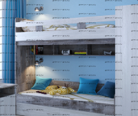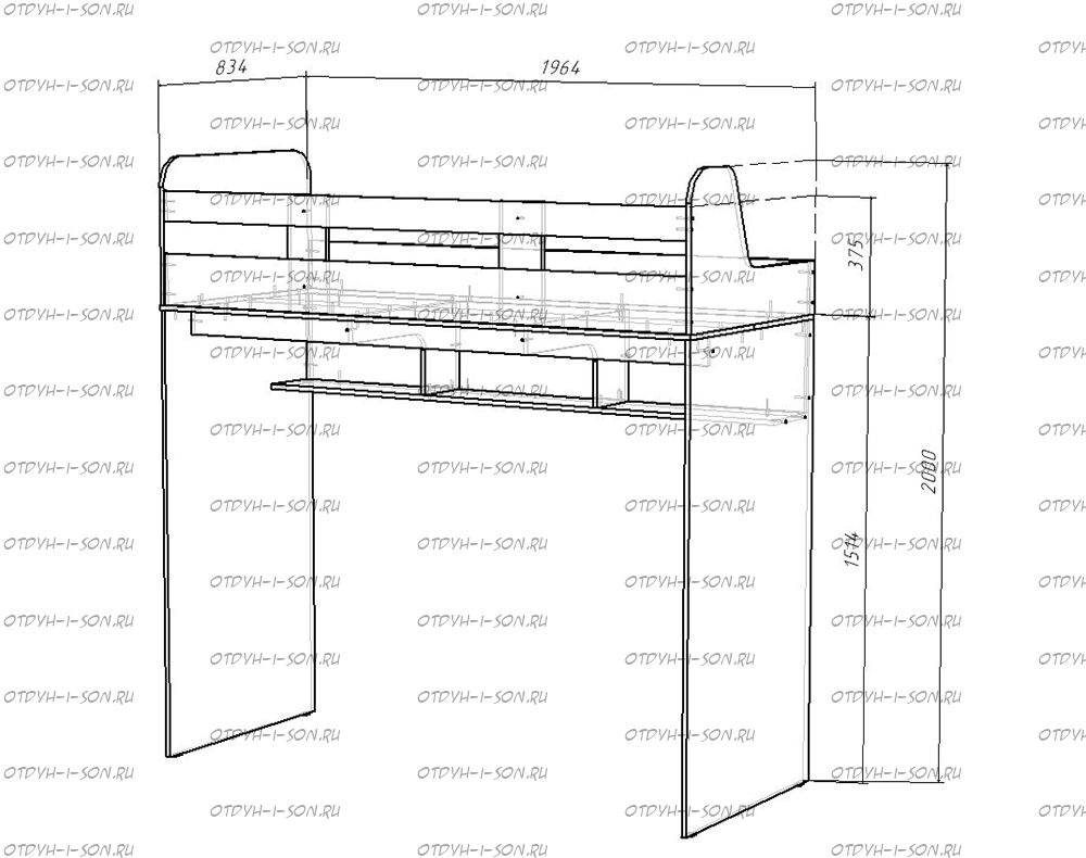 Кровать-чердак Юта от фабрики Ярофф. Характеристики: Размер спального места 80х190 см. Габаритные размеры (ШхГхВ): 1964×832х2000 мм. Вес: 110 кг. Цвета корпуса: Бетон – Винтерберг Матрац можно отдельно заказать также на нашем сайте