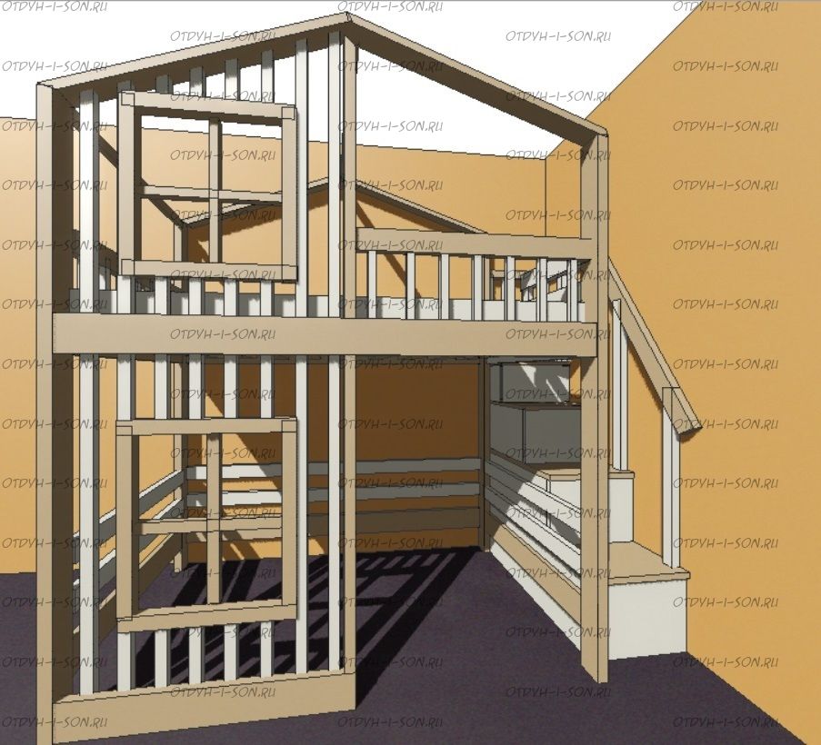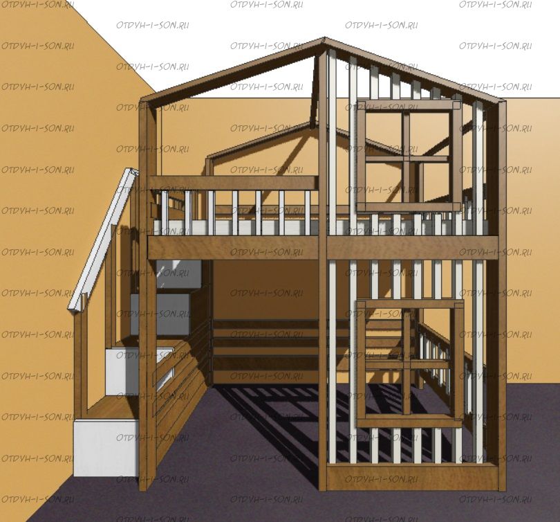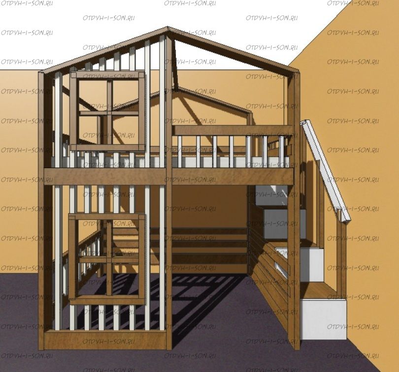 Кровать-чердак домик Roof №5Y2+ может быть изготовлена с кроватью для новорожденного внизу или как трехъярусная кровать, а также в любых размерах и цветах. Характеристики: любые размеры, цвета любые материалы: массив сосны, березы или бука Схемы могут отличаться из-за высоты кровати.