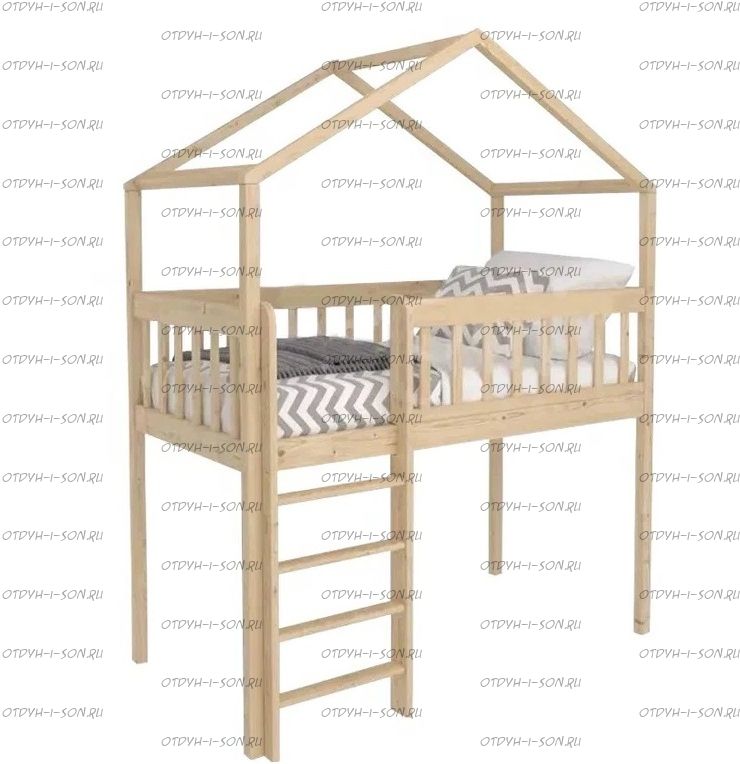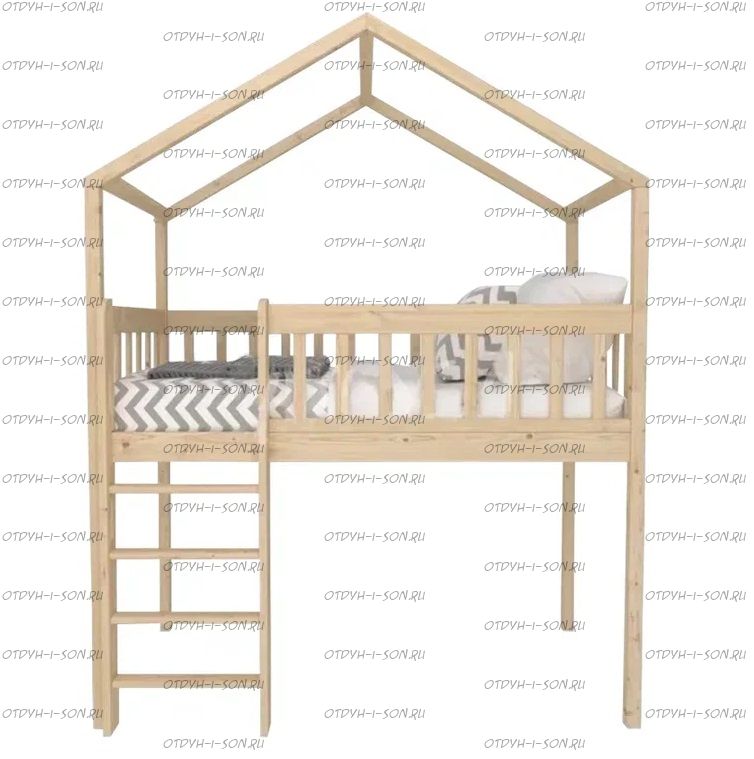 Кровать-чердак домик Roof Комплектация: Кровать-чердак Домик Лестница-тумба Характеристики: •Размеры спального места: 80х160 см.,90х180 см.,90х200 см.и любые другие •Внешние размеры кровати при размере спального места 90х200 (ШхГхВ): •Внешние размеры кровати с лестницей-комодом сп.место 90х200 (ШхГхВ): •Габаритные размеры: любые •Материалы: массив сосны •Цвет покрытия: любая цветовая гамма (таблица палитры Ral);
