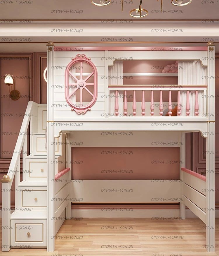 Кровать-чердак домик Sky №850 может быть изготовлена с кроватью для новорожденного внизу или как трехъярусная кровать, а также в любых размерах и цветах. Характеристики: любые размеры, цвета любые материалы: массив сосны, березы или бука Схемы могут отличаться из-за высоты кровати.