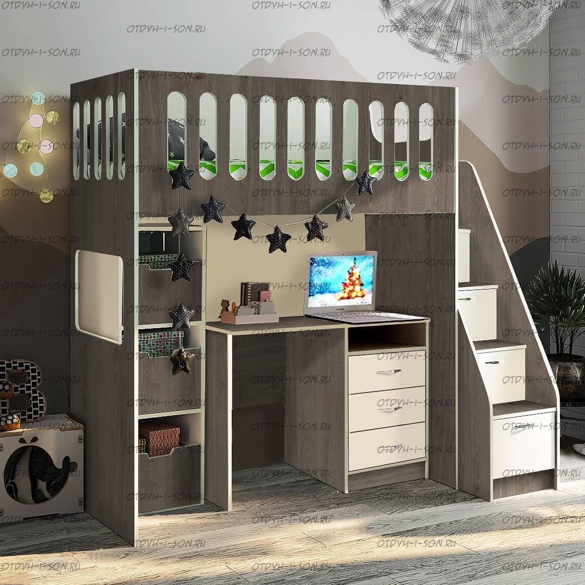 Кровать-чердак с нишей Сказка ДС-27/1 Комплектация: Кровать-чердак с нишей ДС-27 Лестница комод Фанки Кидз 13/8 Стеллажи докупаются отдельно Характеристики: Размер спального места: 80х160 или 80х180 или 80х200 см. Внешние габариты: 208 х глубина 83,6 х высота 191,4 см. Внешние габариты: 228 х глубина 83,6 х высота 191,4 см. Внешние габариты: 248 х глубина 83,6 х высота 191,4 см. Лестница-комод: Ш40 х Г 100 х В150 см. Размер ниши при сп.месте 80х160 см.: длина 163.8 х высота 132 см. Размер ниши при сп.месте 80х180 см.: Размер ниши: длина 183.8 х высота 132 см Размер ниши при сп.месте 80х200 см.: Размер ниши: длина 202.8 х высота 132 см Цвета: любые