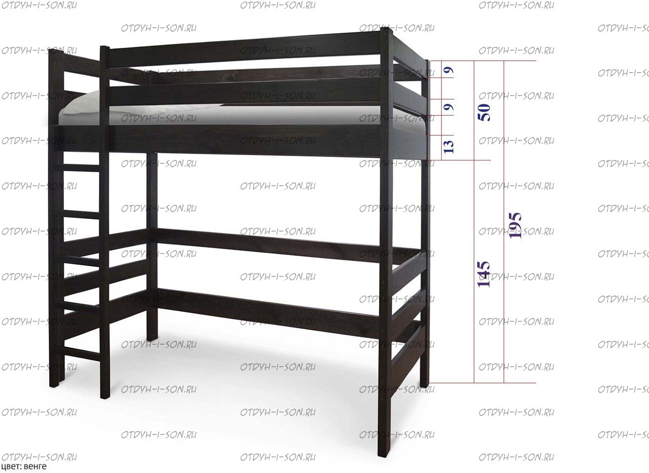 Кровать-чердак Классика, несколько вариантов схем Характеристики: Размер спального места: 80х160, 80х170, 80х180, 90х160, 90х180, 90х190, 90х200 см. и любые другие по Вашему запросу Общая высота: Высота царги: Габаритные Размеры: Характеристика выкатных ящиков: Комплект состоит из 2х ящиков; Мебельная фанера/ Массив дерева; Ящики на роликах; Дно ящика 5мм ДВП; Ящик двигается по полу. К кровати не фиксируется, установка с любой стороны. Масса в упаковке: Объем в упаковке: Крепления кроватей фабрики ВМК Шале: мебельные стяжки, евроболты, заглушки Материал: массив сосны В базовом варианте с тыльной стороны ящиков декоративной планки не предусмотрено Основание под матрас реечное Внимание: для любой модели кровати ВМК Шале возможно увеличение высоты бортиков кровати! Цвет: орех, бук, венге, груша, дуб, каштан, клен, красное дерево, махагон, ольха, сосна, белый (эмаль), слоновая кость (эмаль)