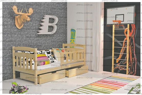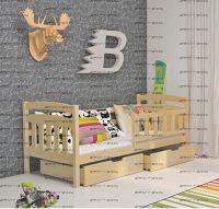 Кровать Кристина №3 массив. Детская кровать №3 с ящиками выполнена из массива сосны в современном дизайне.Бортик до середины кровати защитит от падения Вашего ребенка, а большие и вместительные ящики под спальным местом создадут дополнительное место для хранения игрушек или спальных принадлежностей. Для изготовления кровати используются только качественные и экологически чистые материалы, которые гарантируют высокое качество и прочность конструкции. Приобрести детскую кровать №3 возможно в любо м размере , включая нестандартные решения ,для этого Вам надо связаться с нашим менеджером. Возможен выбор цвета дерева.